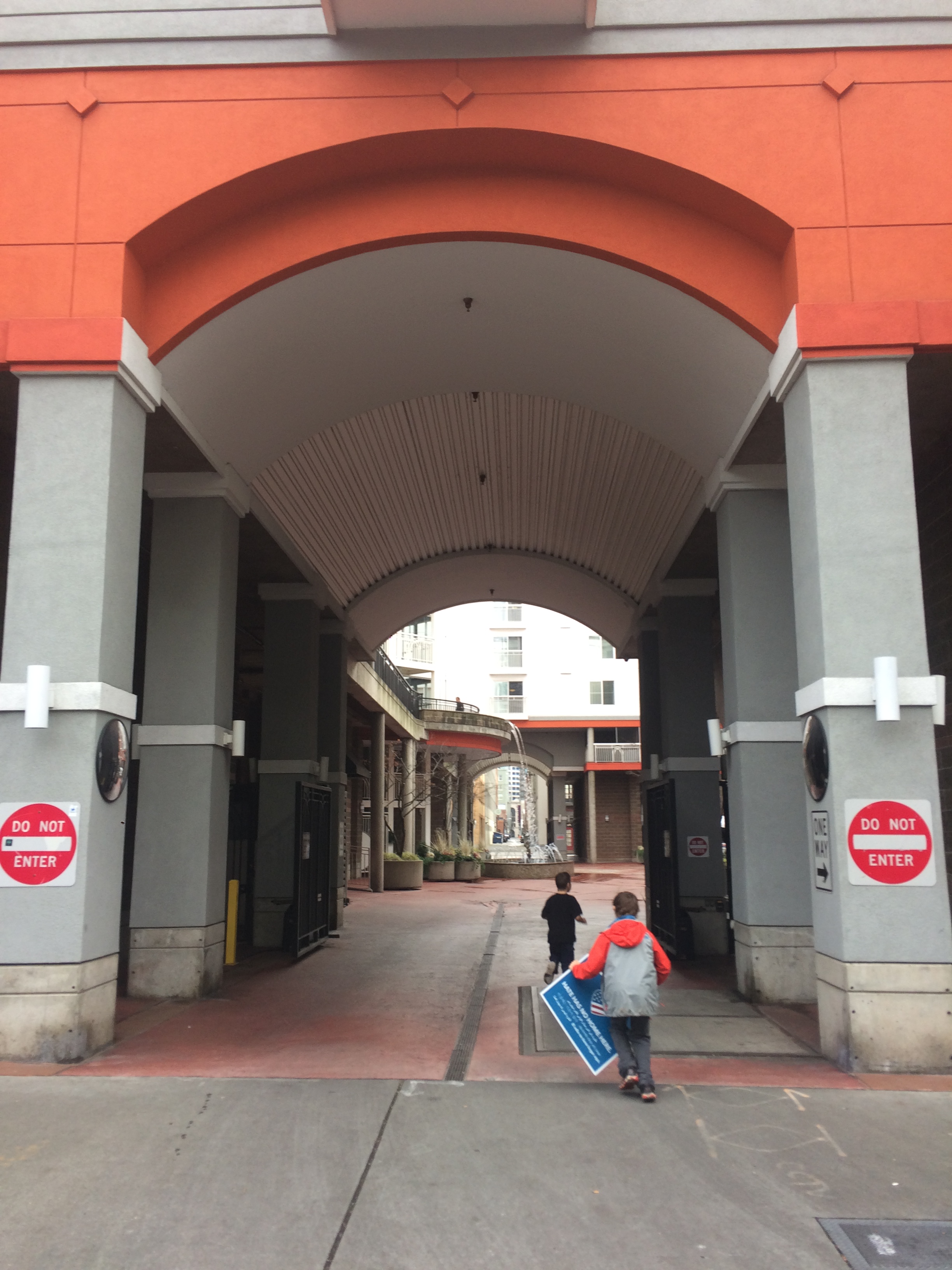 Now just routing us there isn’t planning enough, big trips like this must include eating stops and it’s not exactly picnic weather. I poked around the map to see if there was food to be found along the Cross Kirkland Corridor, but I didn’t see anything perfect so I took to Twitter to ask @CrosswalkView, a family of six with a blog about family biking and walking in Kirkland at The View from the Crosswalk and @GlenBikes who lived in Kirkland before he moved to my neck of the woods and still knows everything about bicycling there. My suspicions were confirmed that there’s not much around the CKC, but I got some good advice if we wanted to leave the trail for Houghton Plaza: The View from the Crosswalk: Connecting the Eastside Rail Corridor part 3: Houghton.