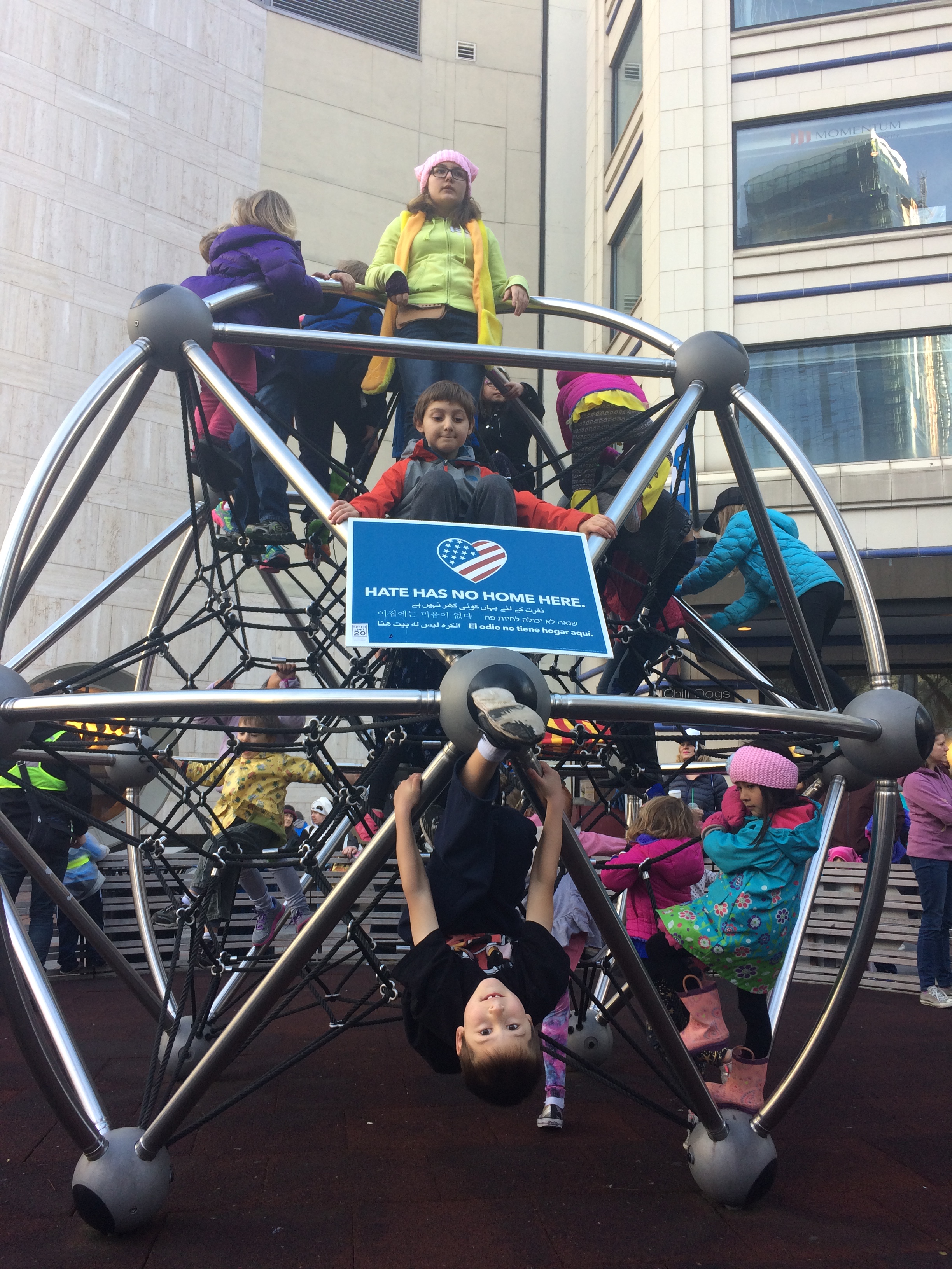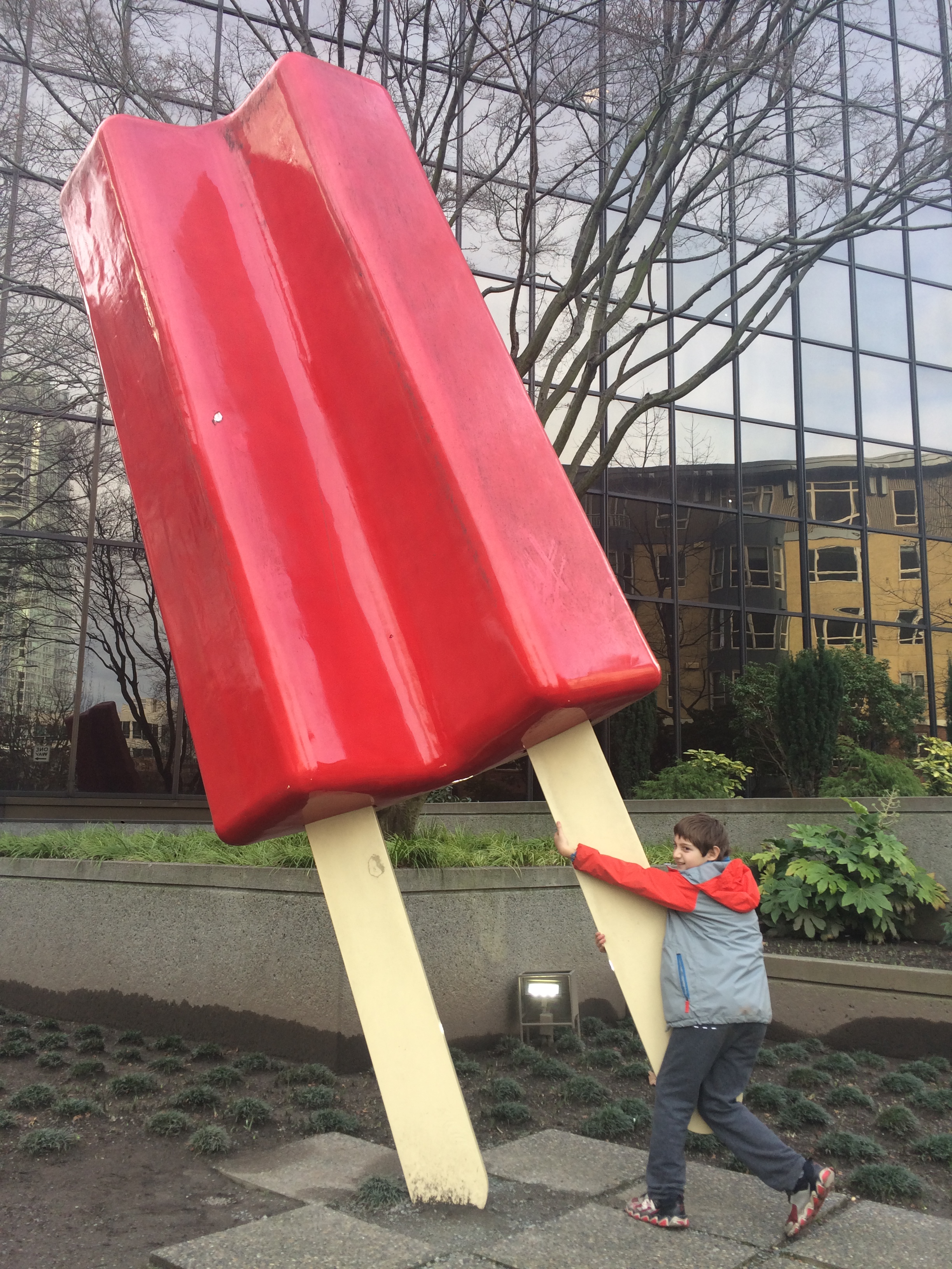 The bus ride and bike ride home went well. I’m so glad I had my seven-year old on my bike because mere moments after he asked if he could disembark to run the last few blocks home he fell asleep back there. He tends to run at 100% capacity at all times–and sometimes burn out before the day is done–whereas my nine-year old and I pace ourselves. Obviously, we’re not nearly as fun. But we stay awake while plodding on home. I think a summer visit without two hours of jumping and laser tagging will leave us all with energy enough to ride the whole trail and visit all the playgrounds, though. Here’s my Strava recording of the Kirkland portion of our day. Can’t wait to come back!