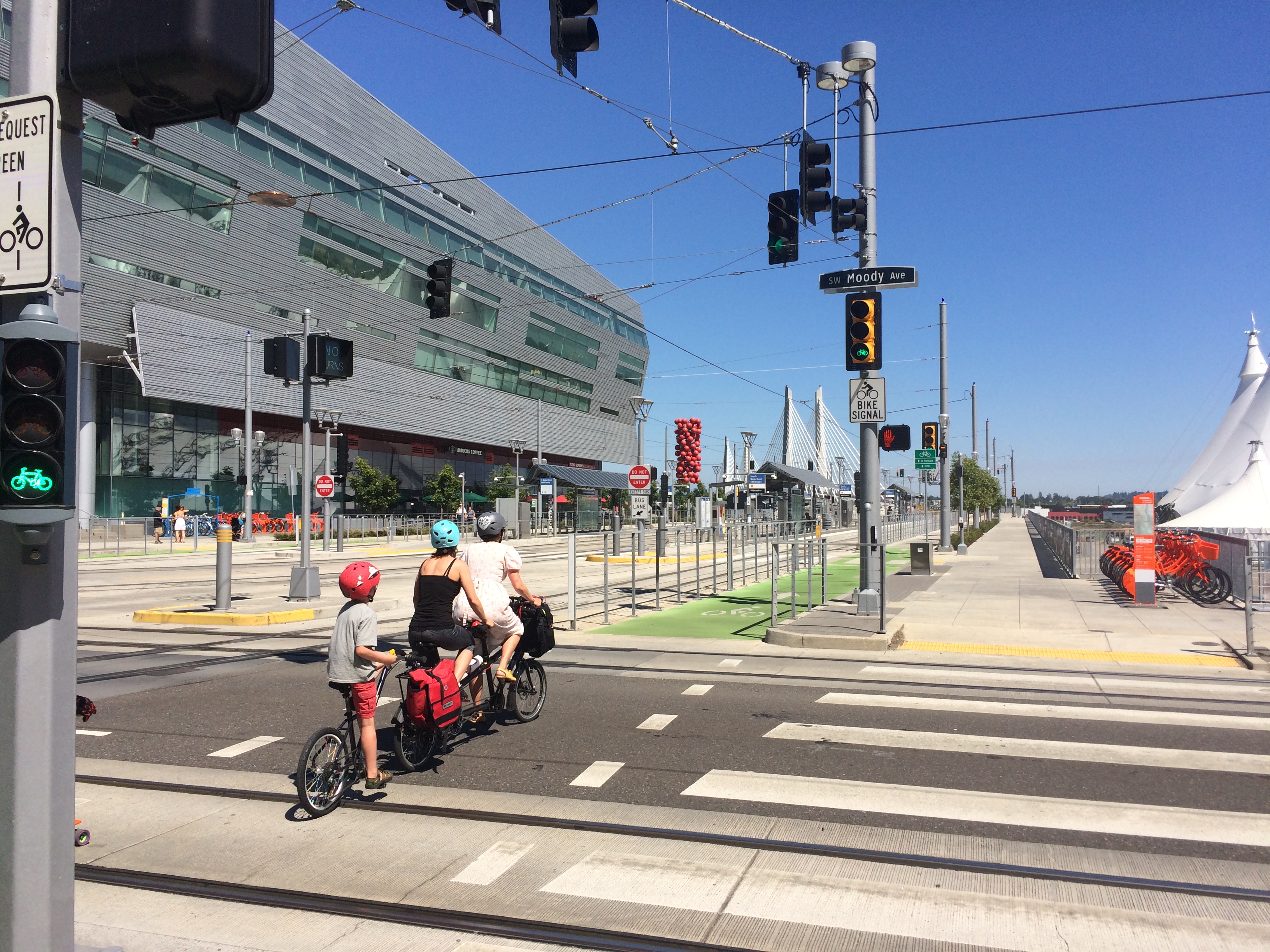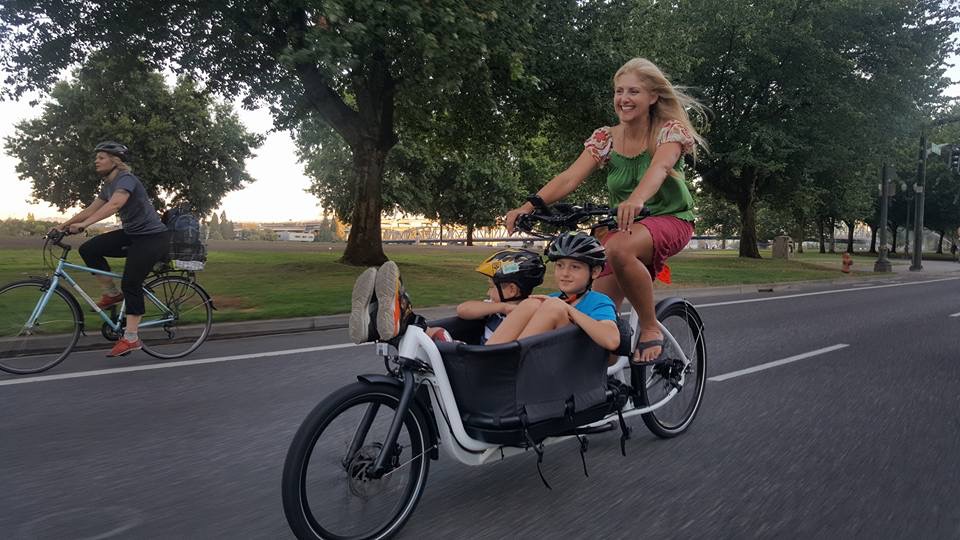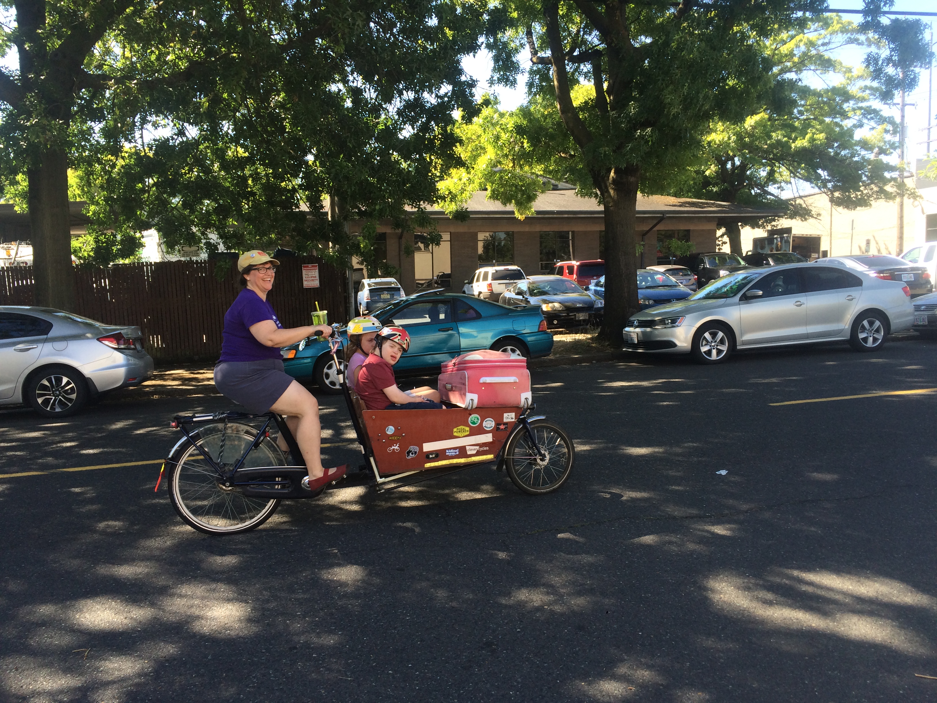 We spent a super-fun August week in Portland on an e-assisted Douze cargo bike front loading bakfiets style kid hauler provided by Clever Cycles. They have a lot of family/cargo bikes in their rental fleet, but I wanted “The one Elle had and liked so much!”