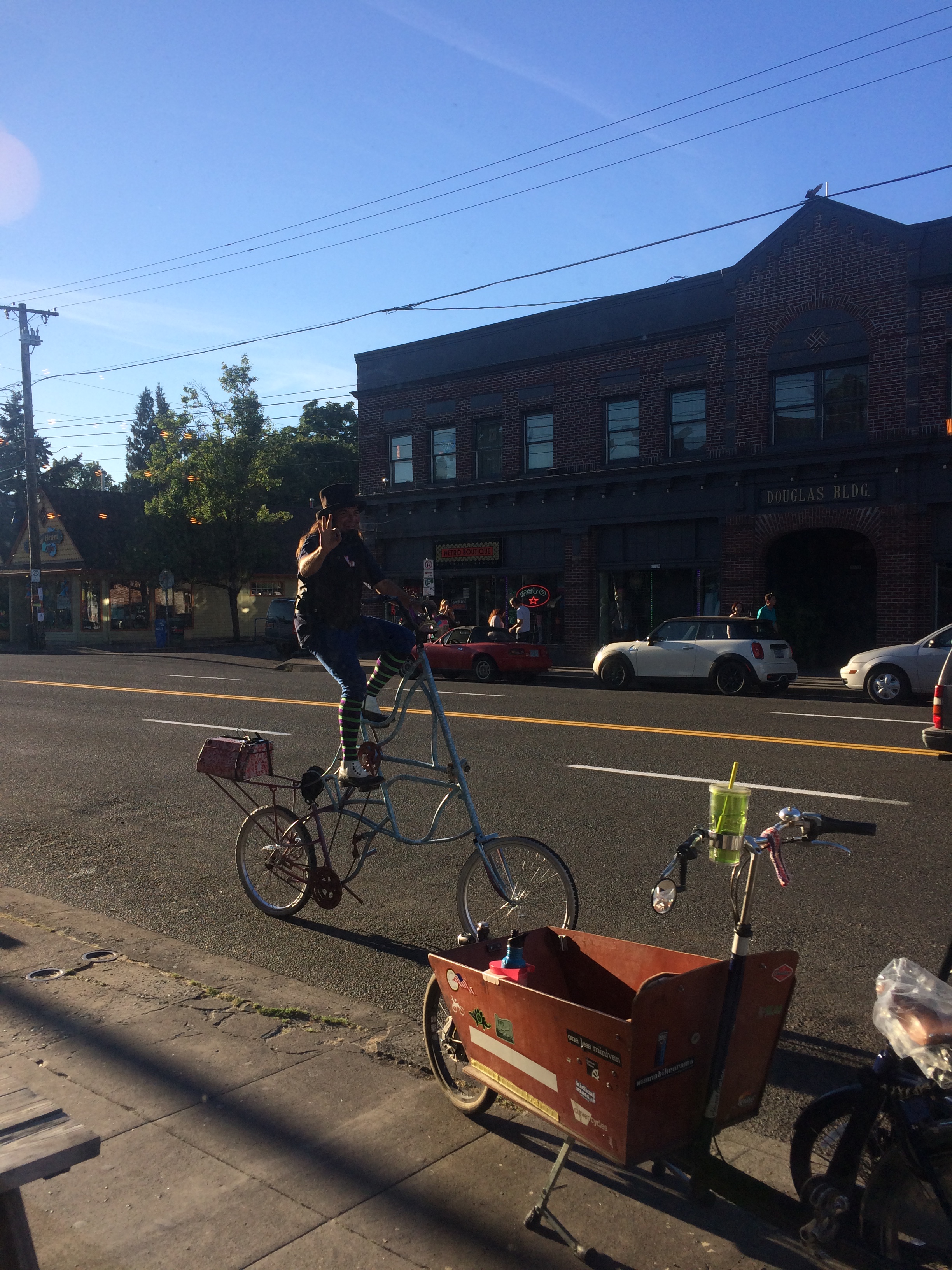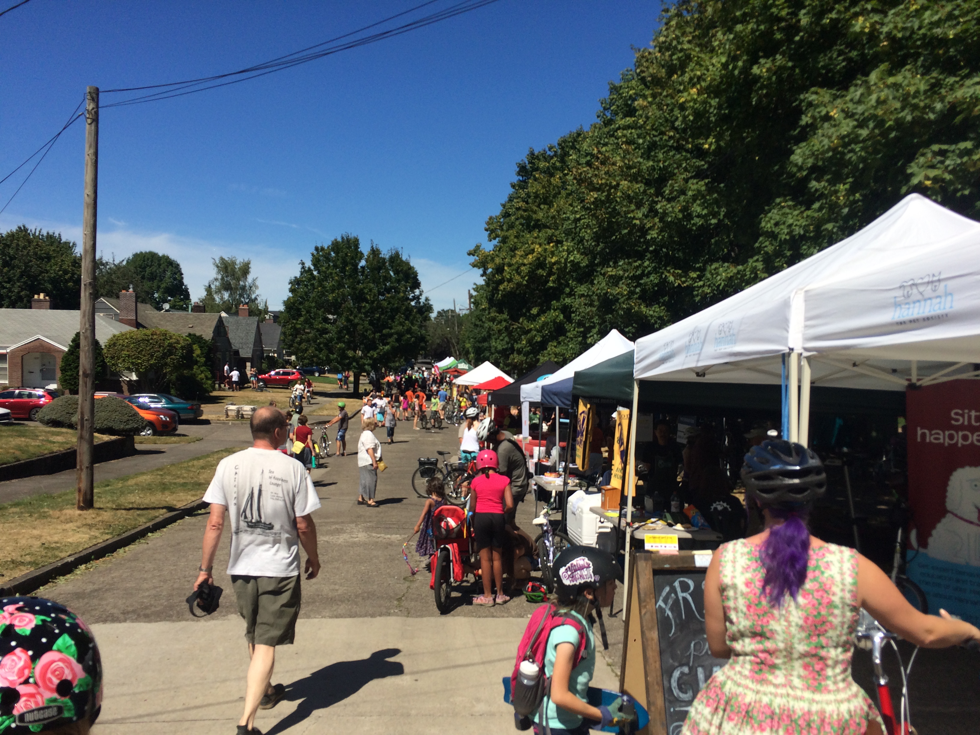 We biked most of course, starting at Laurelhurst Park and making our way clockwise around to Colonel Summers Park. It was everything an open streets event should be, and a lot bigger than Seattle Summer Parkways and Seattle Bicycle Sundays. Not only was it longer, better attended, and packed with more activities, there were no cars! The Seattle events are more sort-of-open streets events with too few volunteers and inattentive police officers keeping some of the cars out. A friend told me that Portland originally had a similar system, but now uses construction traffic controllers who love getting waves and thank yous at Summer Parkways versus less grateful feedback from people in cars during their usual gigs. It’s really worth a trip down, and we’ll try to visit again for one next summer.