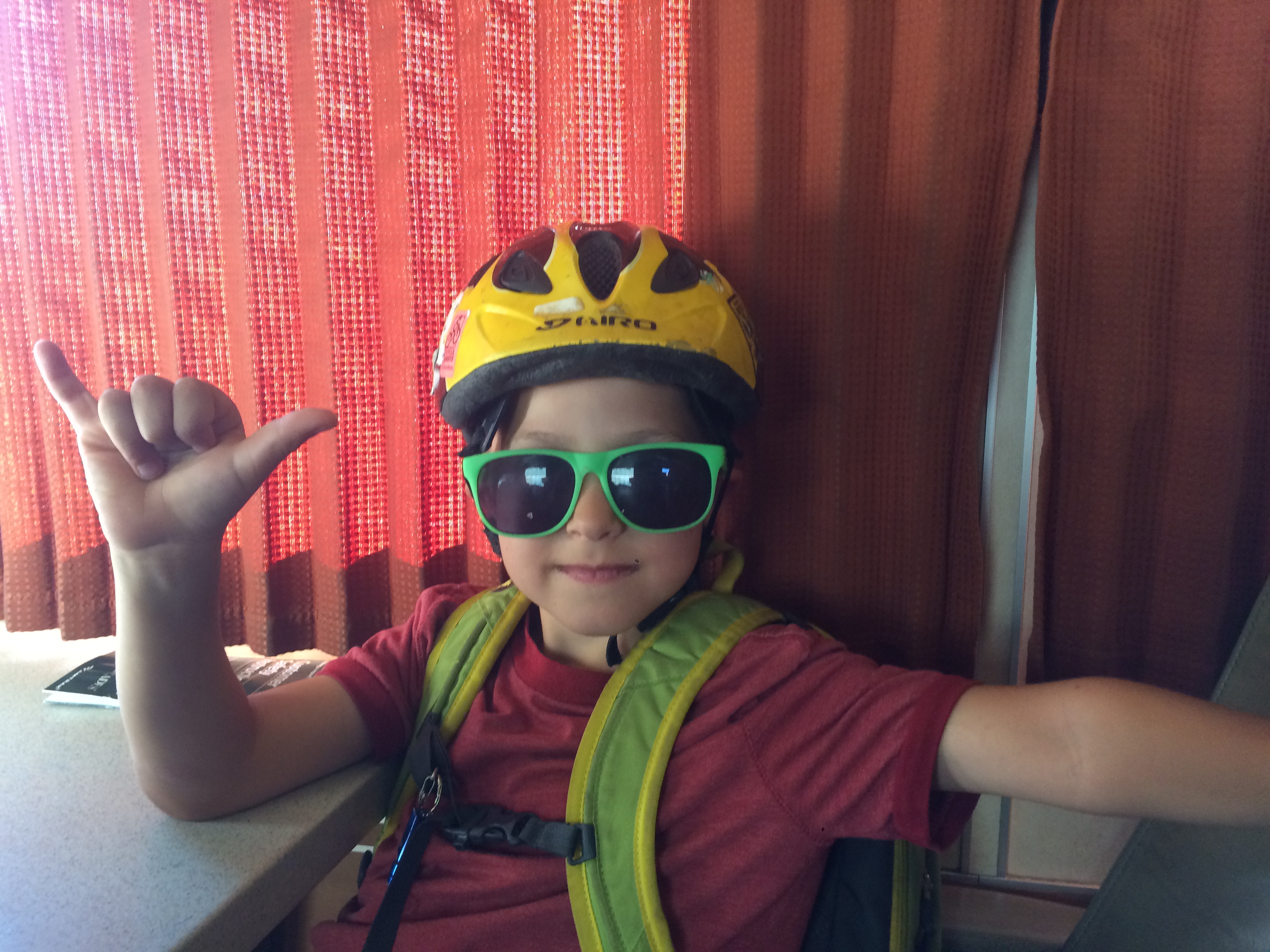 One nice thing about bringing a bike to Portland is that we have wheels to get to and from the train- or bus stations. We generally take the bus once a month to visit the orthodontist 20 miles away, but we bring bikes so we don’t have to walk a mile or add a second bus transfer. So we’re not the best walkers…especially with luggage. This trip went as expected: walked across the street to catch the bus (easy peasy), then walked a few blocks to the train station where we had the obligatory discussion and investigation for stairs and elevators locations. One kid currently won’t use elevators and I wasn’t about to lug the big wheelie bag down a long flight of stairs so we worked out a plan together (of course interrupted by a helpful stranger letting us know the location of the elevator and my explaining that we were just accommodating the non-elevatoring kid, but thanks!) and split up. Always a fun little adventure and something I always forget is going to crop up. In Portland we had to walk a bunch of blocks from the train station to the bus stop and just missed the bus…but it’s a high-frequency line (does Seattle have that??) so we only had to wait 10 minutes. However, those 10 minutes involved a very curious bee and lots of screaming. And it was really hot. And then we walked two blocks from the bus stop to Clever Cycles and we all survived!