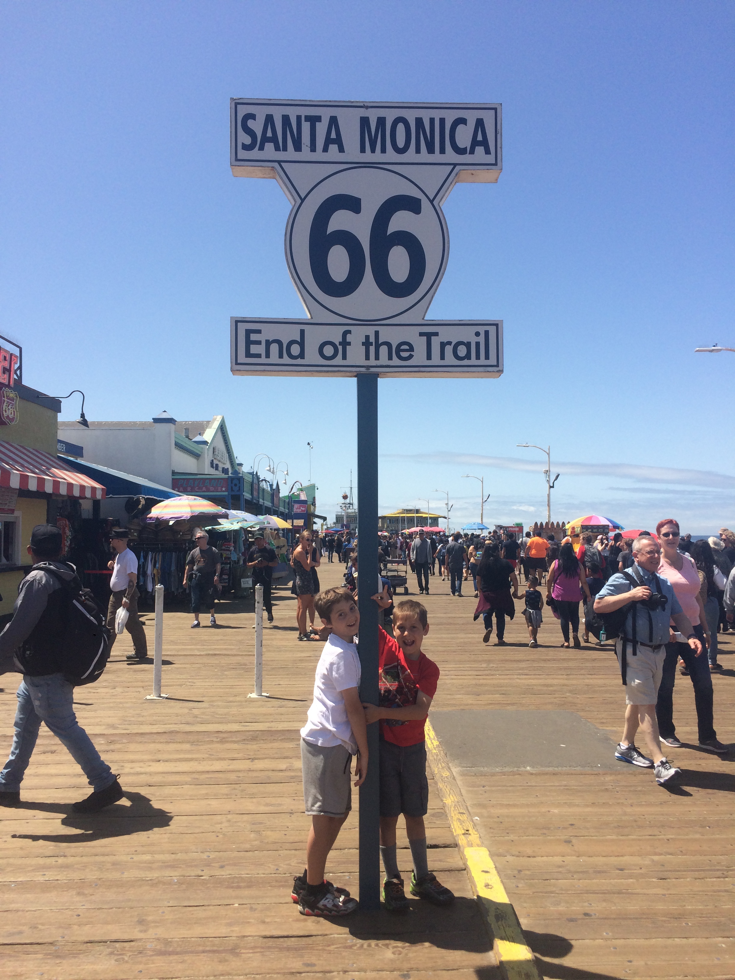 After Muscle Beach we biked nearly three miles in the other direction to the Santa Monica Pier. It was a long haul for the kids on unfamiliar bikes, but we made it. And after eating and resting, my younger and unhappier camper was back to normal!