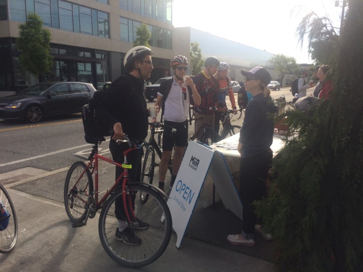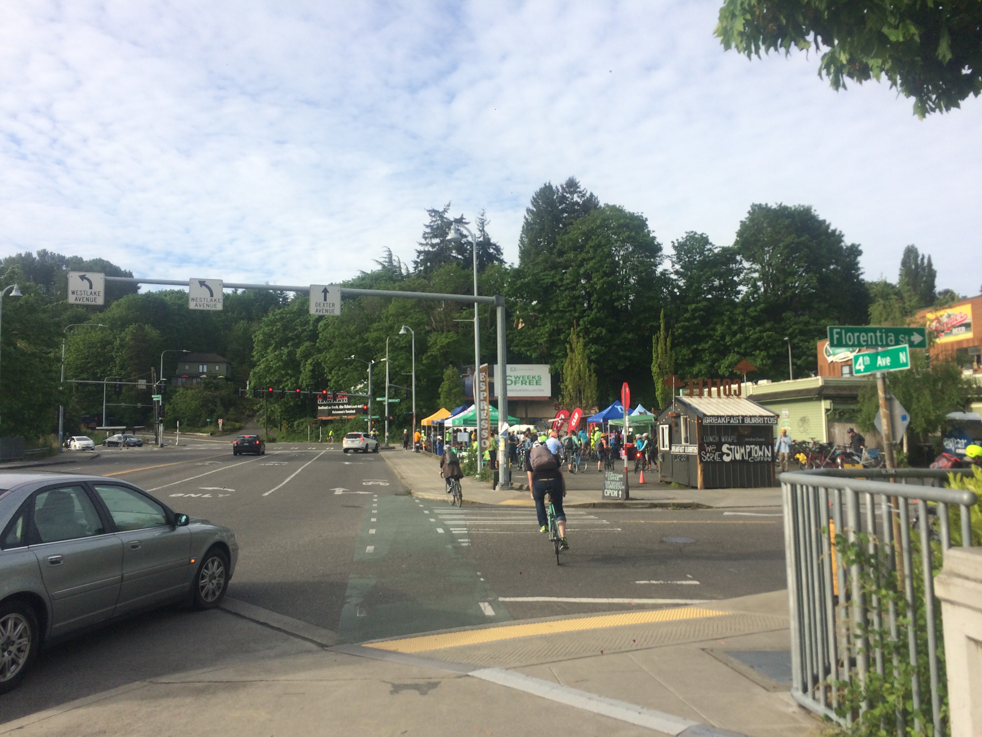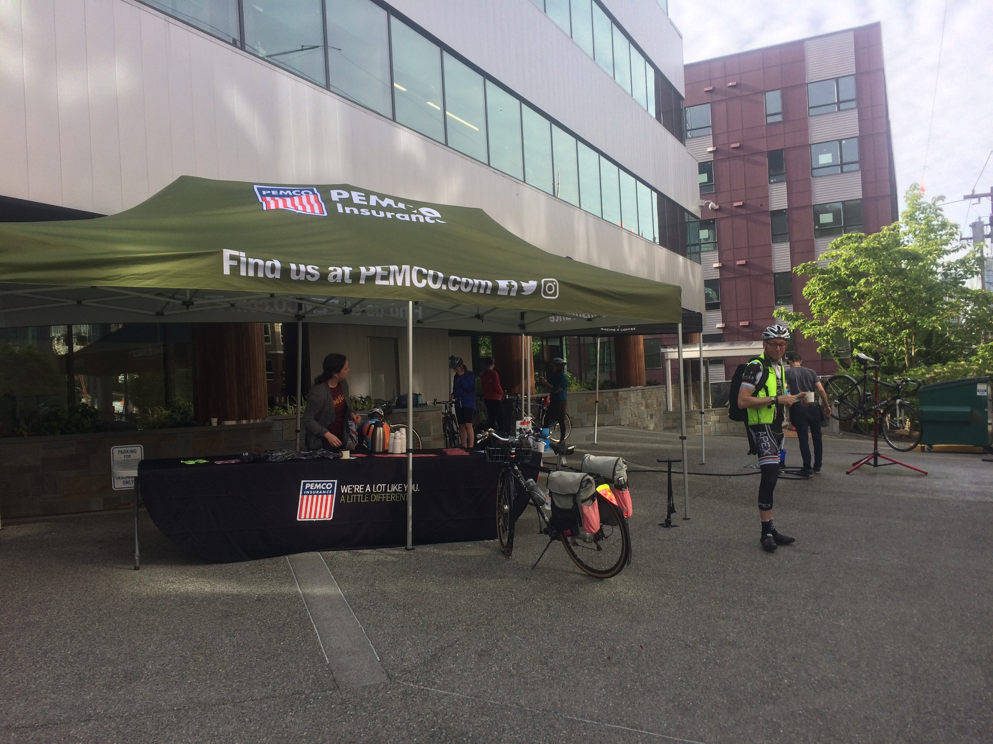 I was tempted to do a repeat of last year’s Bike Everywhere Day trip and take the light rail to Capitol Hill to hit the Swift Industries station, but I thought saving the light rail fare and hitting more stations would be nice this time.
