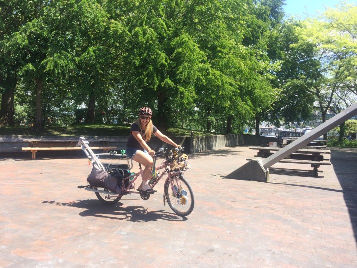 Right now “bike distance away” is the distance I can bike on a slow and heavy bike or that the kids can bike on their own little bikes. And if it’s farther, I want to take the bus, train, or ferry, ideally paired with bikes. If there’s ever a time we can’t bike or don’t want to bike, I want my life to support taking a little extra time to walk to the close things and bus to the far things.