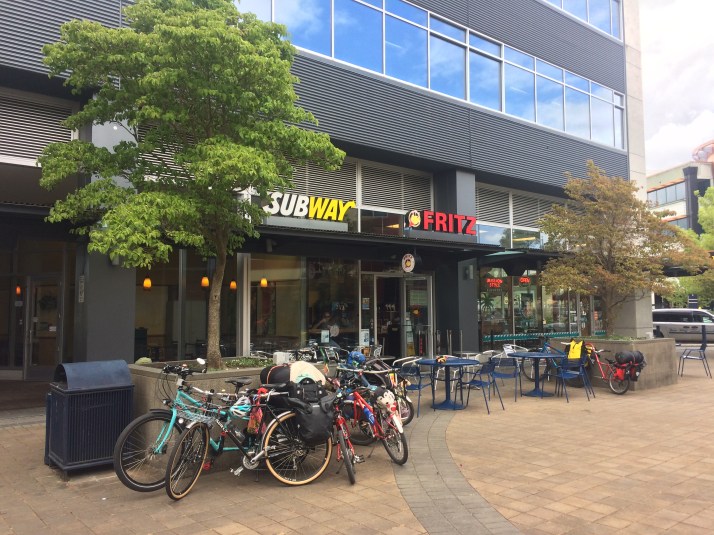 Caveat: this works for me because we live in a big city (a.k.a. an Urban Cycling-friendly city) and I want to take advantage of that. Things are tightly-packed here. That means school is three blocks from home, and everything else is almost as close: a few parks, a few libraries, a few bike shops, a few grocery stores, farmers markets, art supply store, veterinarian, umm…what else does one need?…cat cafe, funky gift shop, conveyor-belt sushi a ten-minute pedal in either direction along the multi-use trail two blocks from our home.