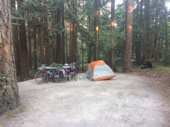 UPDATE: We met a couple on bikes on our return ferry who had been turned away! They said there’s a new guy at the park who turns bikes away if it’s full. They found a place to camp in Ganges and paid $24 CAD rather than $20 and had RVs for neighbors.