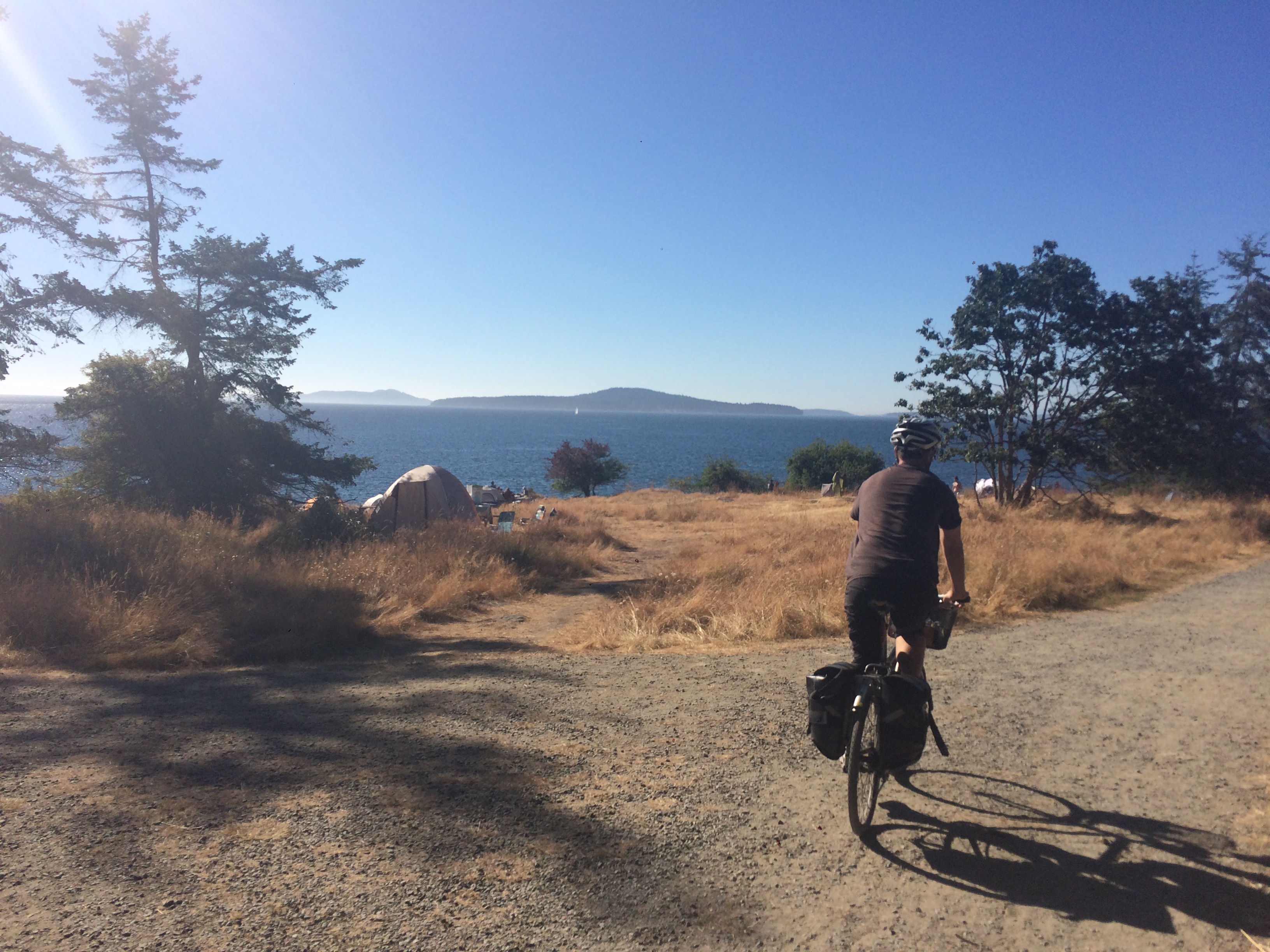 Check out is at 11:00 a.m., but I wanted to try our luck finding a vacated spot at 8:30 a.m. so we could dump our stuff. Salt Spring is hilly and I wanted to ride to lunch and back without camping gear. We got incredibly lucky and scored an empty site right on the water.