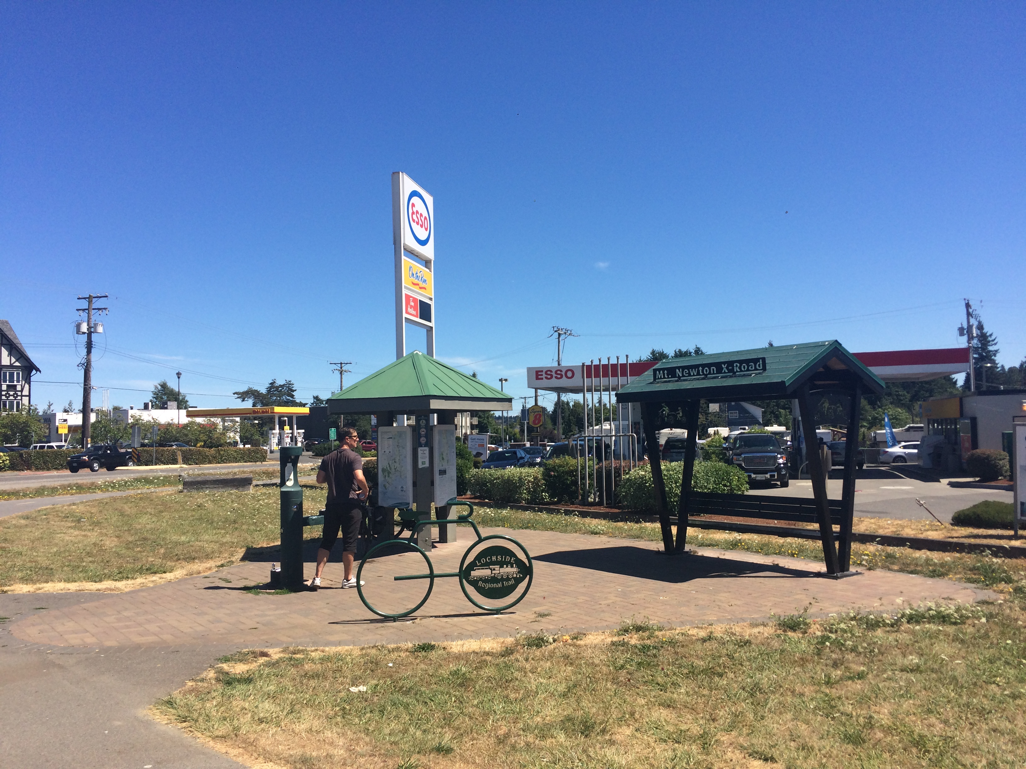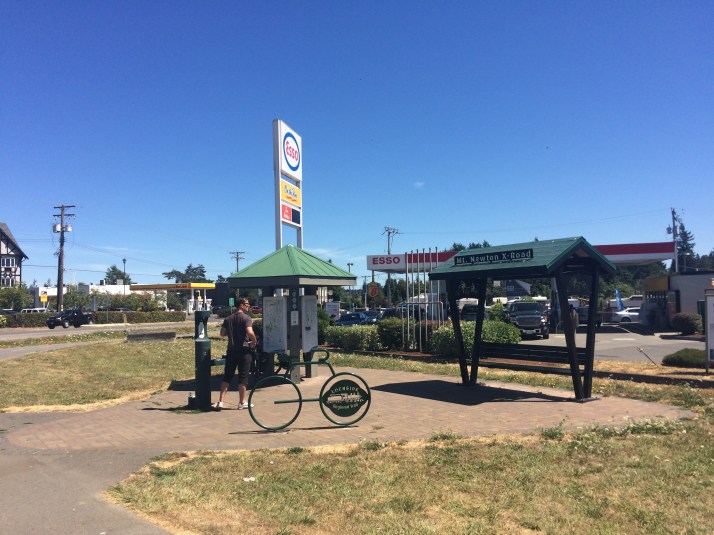 Sunday was structured around us being back to Victoria in time for the 7:00 p.m. ferry. So as not to be rushed, we met my dad for breakfast at Rock Salt by the Fulford Harbour ferry at 10:00 a.m. and took the 11:50 a.m. sailing. We saw so many more bikes getting off and on the ferry as we had the previous morning! And then once we were back on Vancouver Island there were bikes everywhere! We kept crossing paths with the same people as we stopped for water, shade, and blackberries and had progressive conversations. The couple that had been turned away from Ruckle warned me off my plan to swim in Beaver Lake due to E. coli the last few years. And later they recommended our Victoria lunch spot: Tacofino. And we met the sponsors of the drinking fountain at one of the bike rest stations.