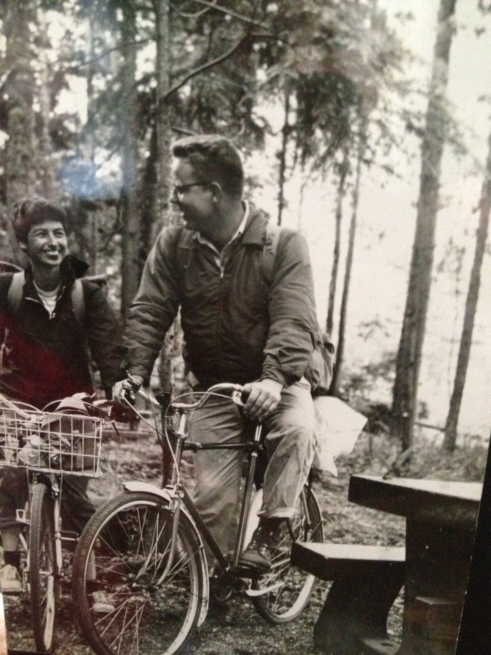 Twig & Buoy is usually just open for dinner, but this day they accommodated our special event and it was terrific. I heard many wonderful stories about my aunt and uncle and shared my own. Some of the old photos on display I hadn’t seen before, but my favorite will always be this one, from a bike tour they took all over Vancouver Island: