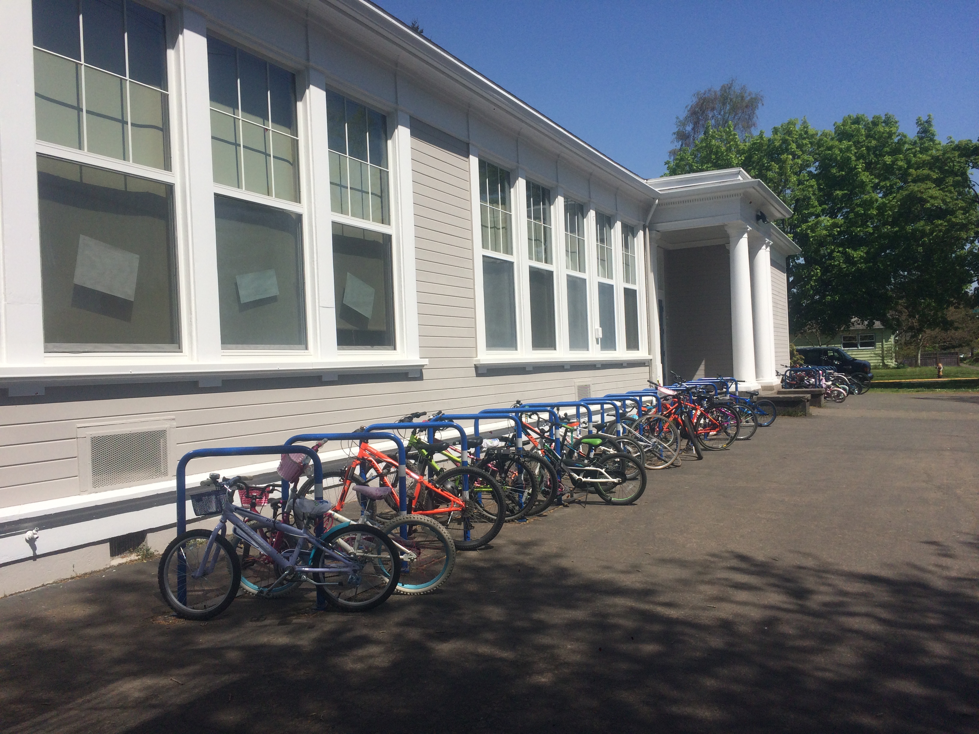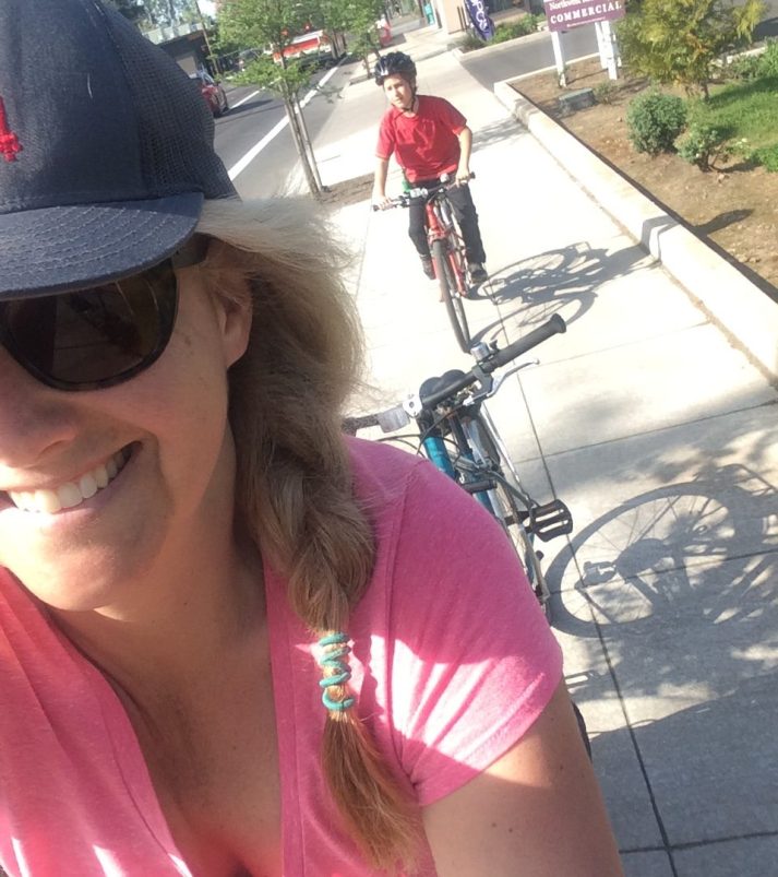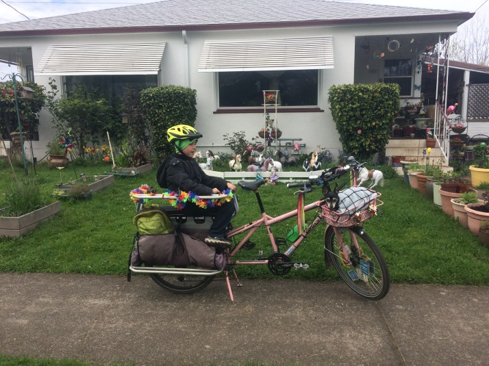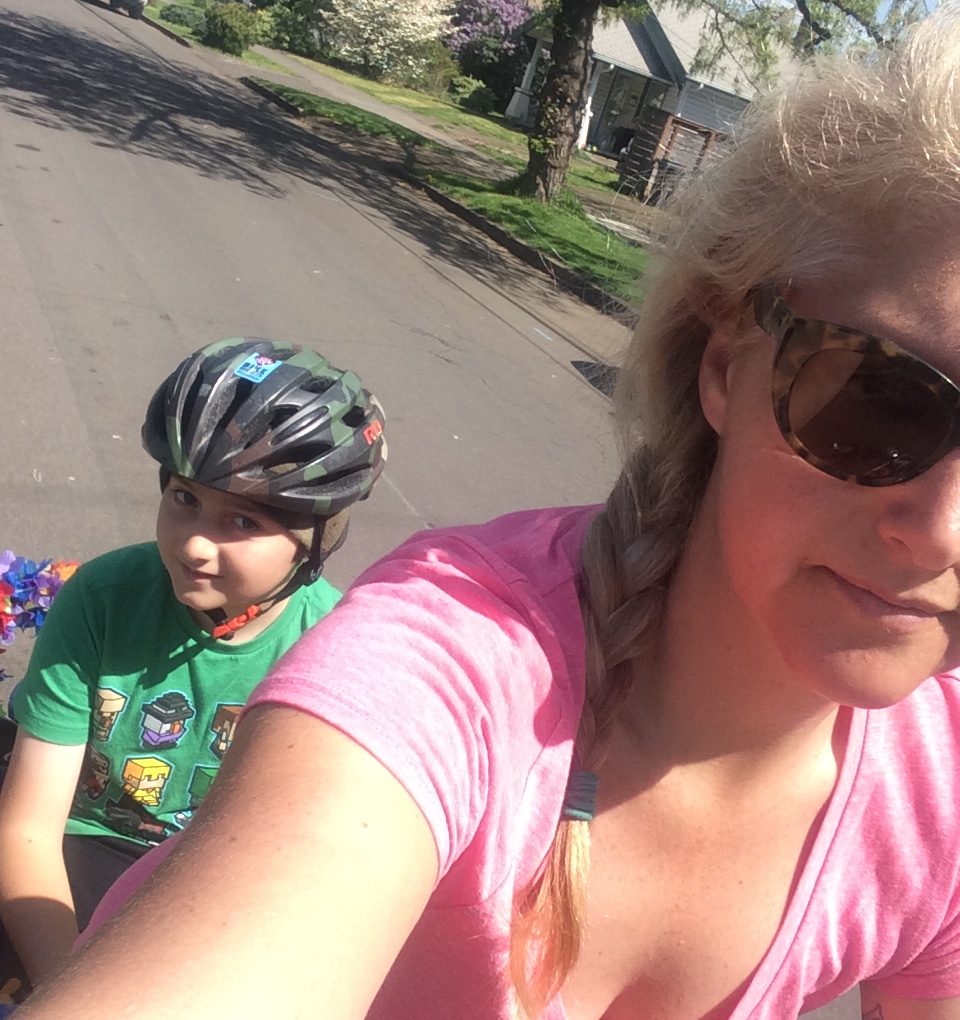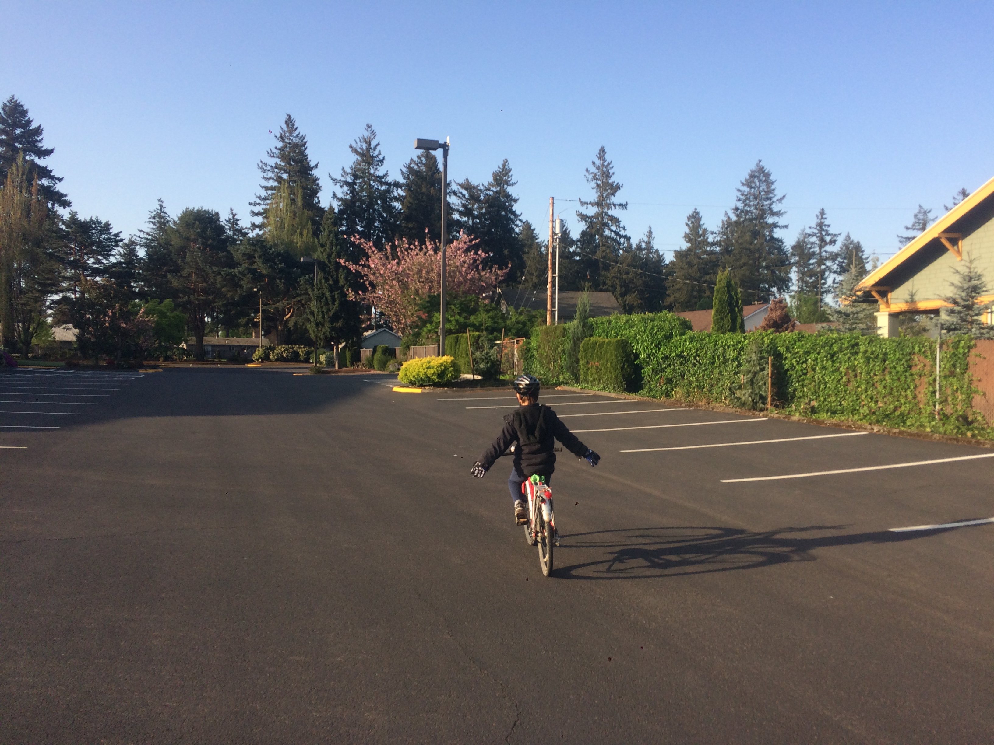 Had we set out early in the day per my original plan we would have stayed dry. Unfortunately after a long week I was pretty worn out so we stayed in until 2pm and ended up getting caught in horrible rain. I saw that it hailed in some spots, but our rain was heavy and cold, but not quite hail. But there were also some spells of sunshine and my eight-year old and I biked in short sleeves for part of the day.