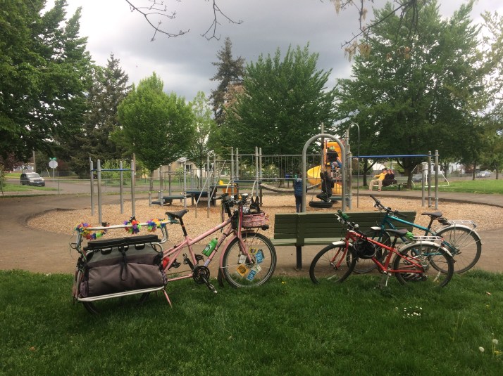 Go figure. I had the feeling I bike more nowadays, both because Portland is flatter than Seattle and because I’m eager to explore all over the place. I imagine that will mellow out once I’ve seen everything…but maybe not! I guess I’ll find out in a year. It’s fun recording mileage every April, but I don’t tend to do so regularly otherwise. Last year using the battery-draining Ride Report app for Bike Everywhere Month was just too much for me and made me stop recording stuff all together once May was over. But for now, I’m going to try to keep at it (with a Garmin device I move from bike to bike that uploads to my Strava account) until it gets to be too much. Yay bikes!