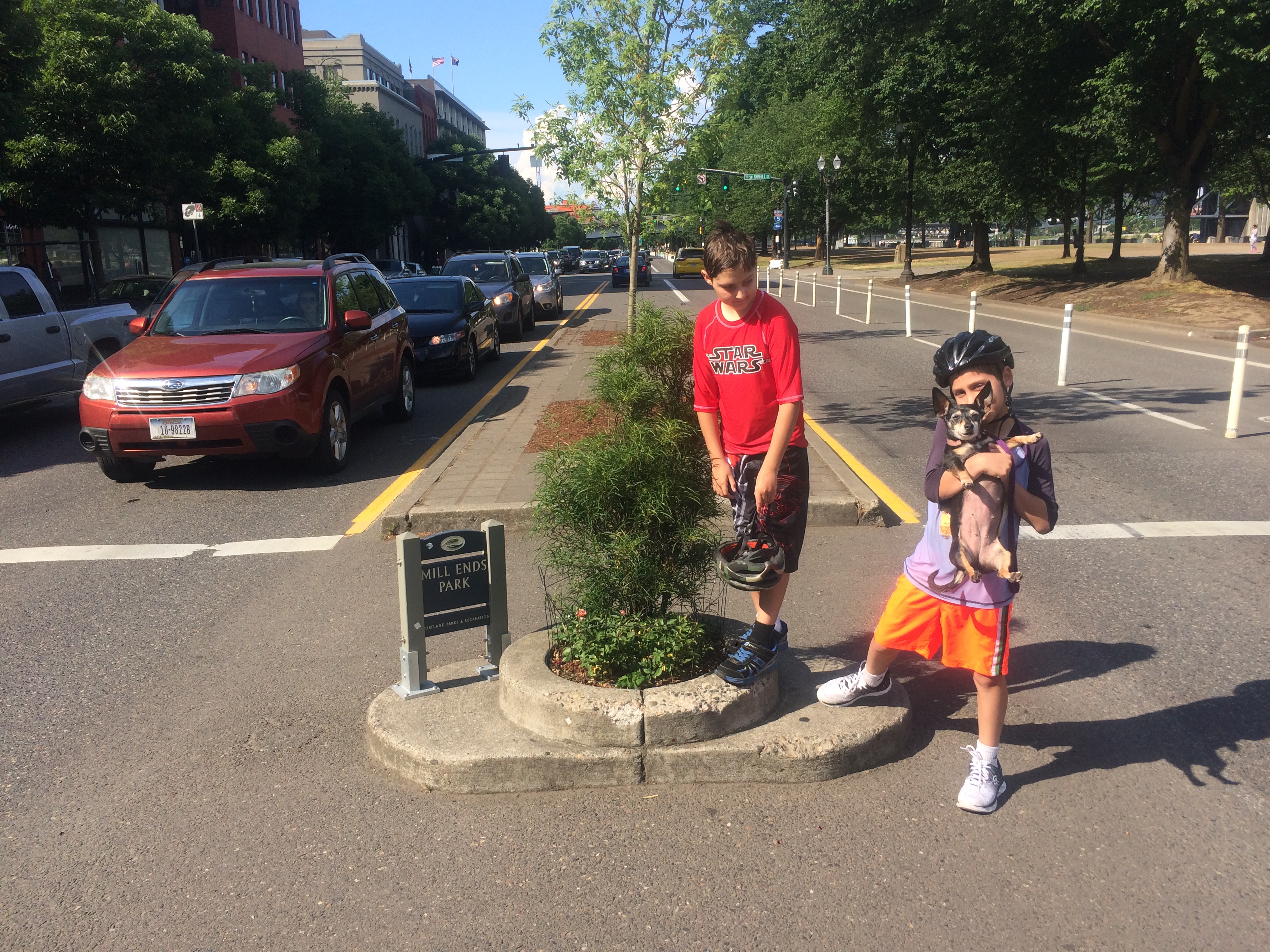 Since we were just a block away from Mill Ends Park, the smallest park in the world, and it has a new sign, we stopped by there to visit.
