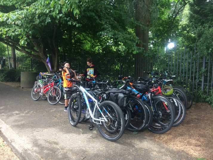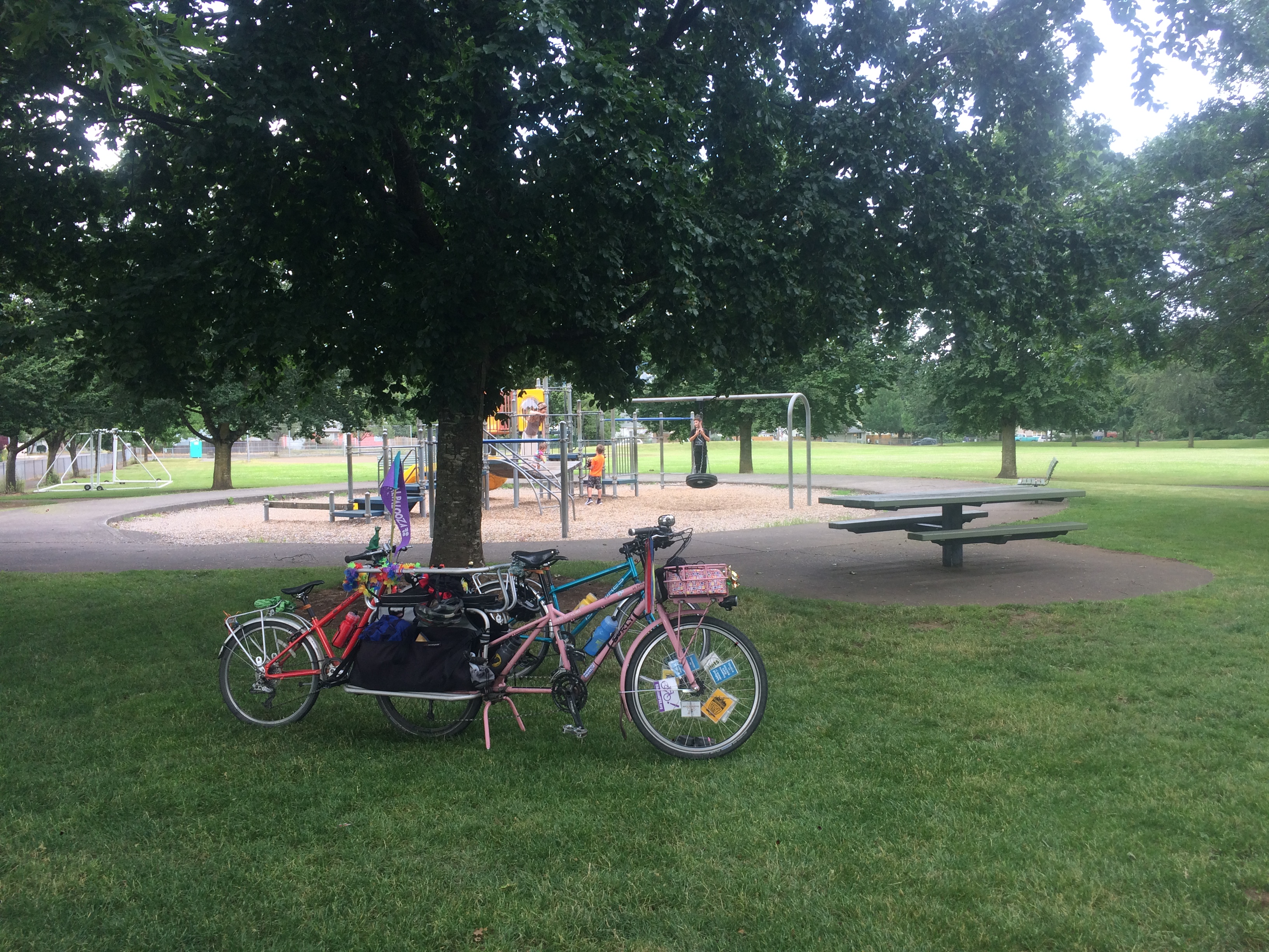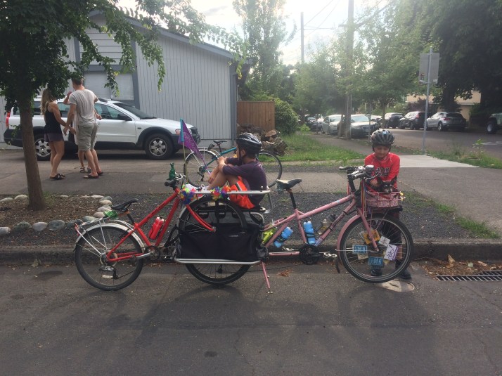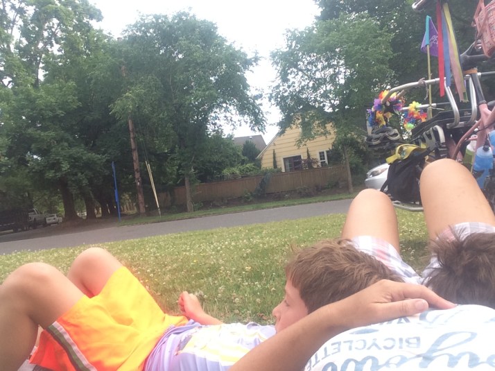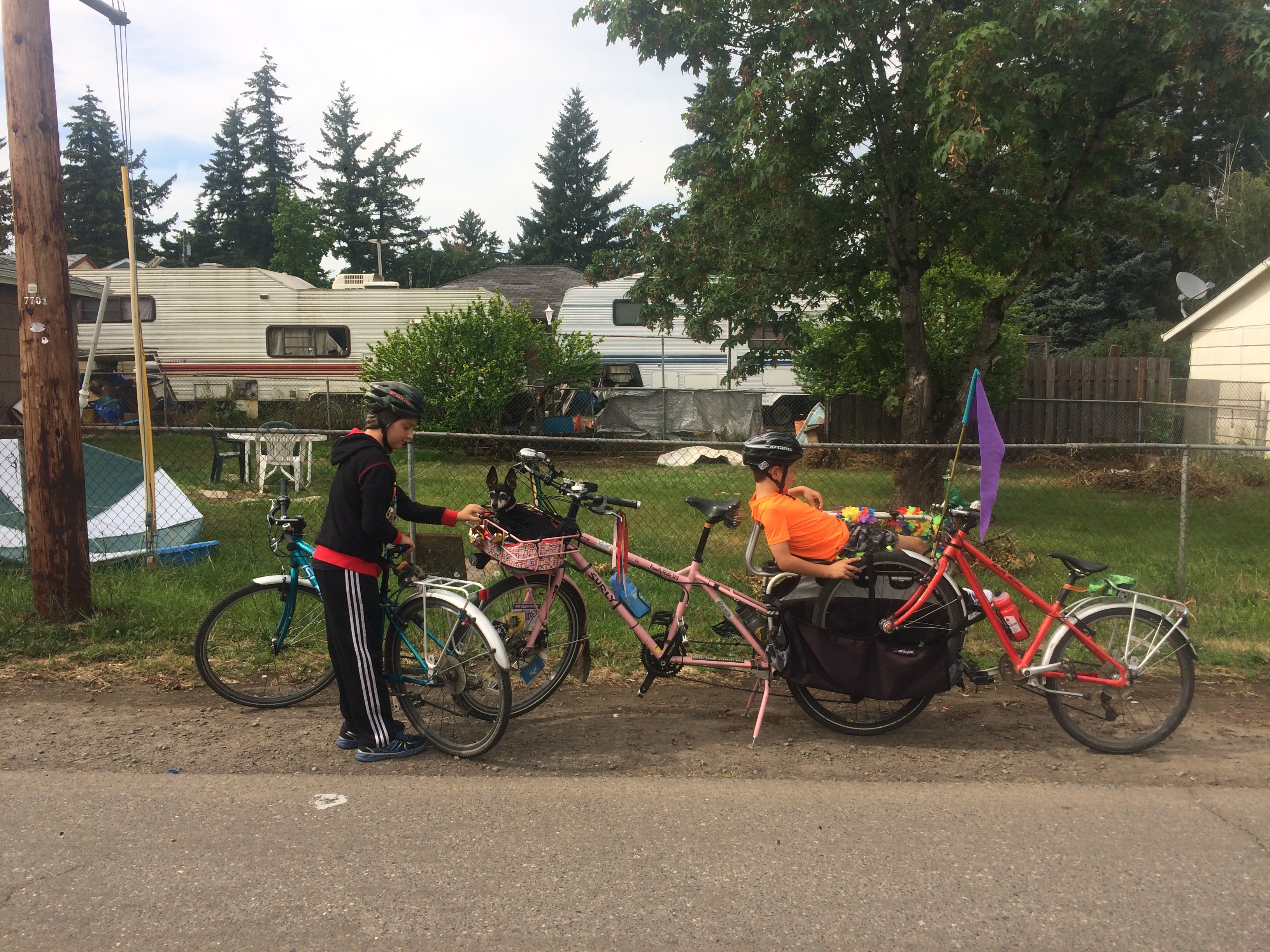 Well, I learned nothing from Monday and my plan to keep our days short while we acclimated to the long summer days. Yesterday we biked 16 miles over 7.5 hours…well, my 11-year old and I biked 16 miles, but my eight-year old biked almost 11 miles before hopping on my bike. My 11-year old has become such a little workhorse, that I might ride the tandem with his little brother for our next big day and feel safe that he won’t need to be carried at all. I used to pull him behind the tandem on a trailer bike, but he’s a bit big for that now.