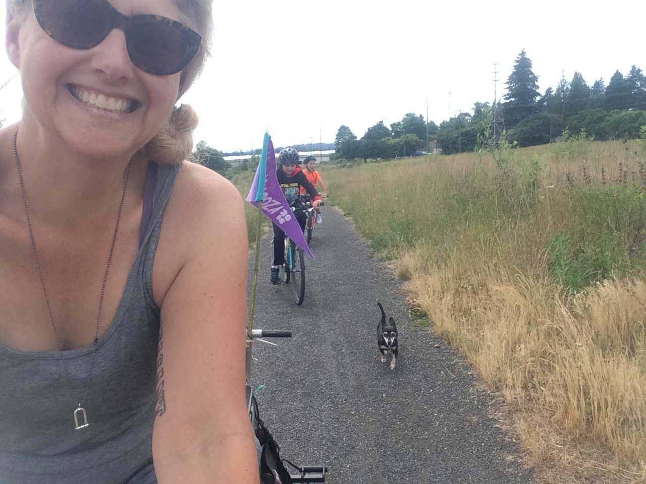 Then just as we started our slow ascent I got the “Mama, I need a lift!” request. I’m pretty sure a headwind hit us just then, too. Or maybe I was just tired. Or both.