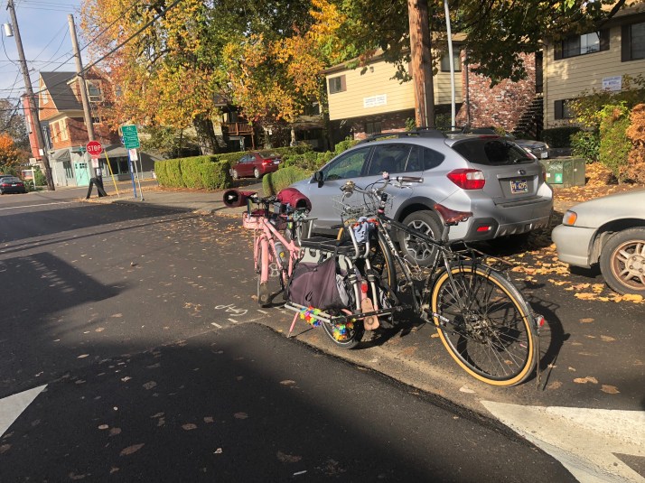 It’s always exciting to see something new in the world of bike infrastructure. A few Portland roads were repaved and treated with new “bike-friendly” speed bumps. BikePortland ran a post about them last week: PBOT’s experimental bike-friendly speed bumps. The article garnered a lot of great (and some silly) comments…but there were few comments specific to biking the bumps with kids. I’d love to hear what other family bikers think here or there or both.