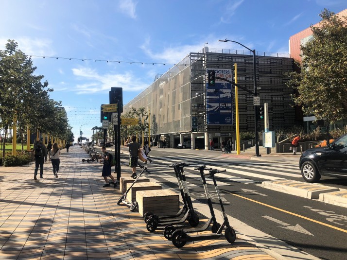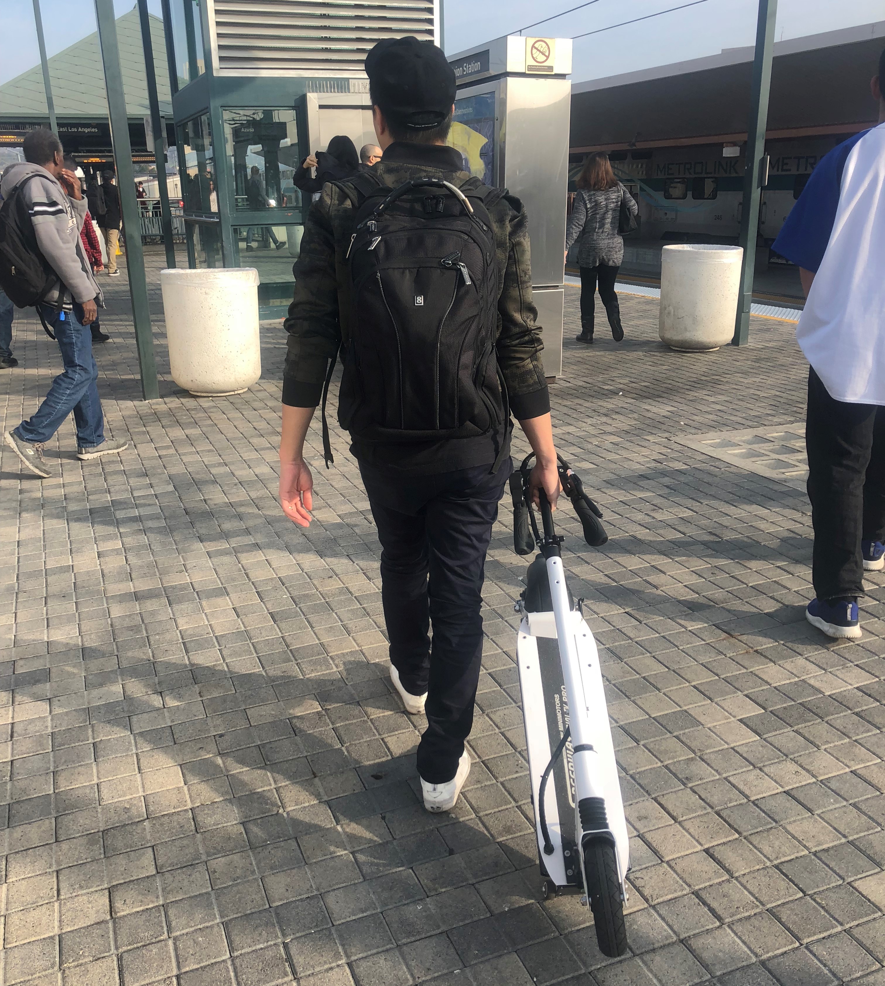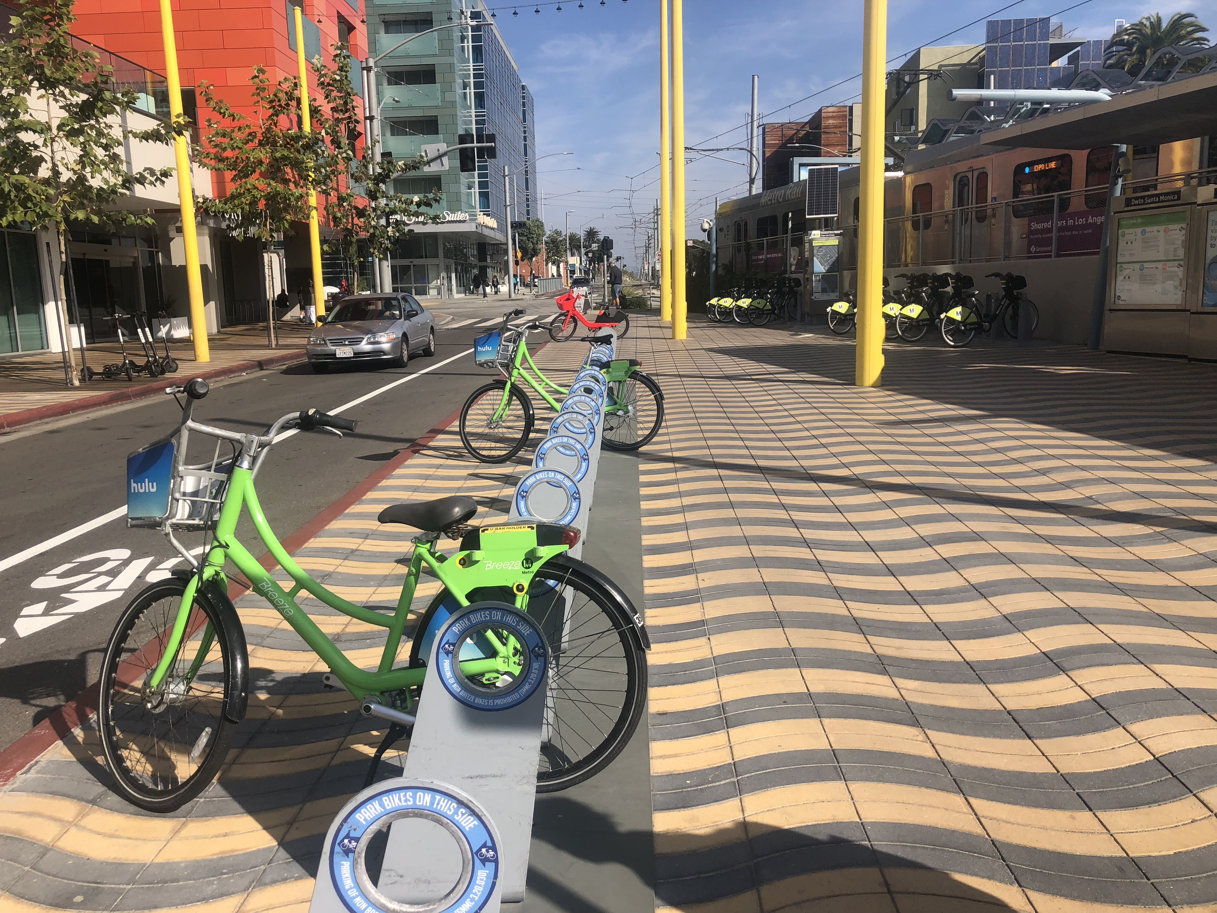Walking a few blocks to the light rail station, playgrounds, and lunch spots is a breeze, but when the destination is a mile away things get tricky. My kids can walk a mile, but we’re not big walkers since we usually have our bikes for going that distance. My niece’s Nutcracker performance was held in Pasadena, a bit more than a mile from our hotel, so we took a Pasadena Transit bus (which takes TAP, of course) to attend. For those 16 and older bike- and e-scooter share are perfect solutions for these sorts of trips, but Pasadena booted bike share after one year and e-scooter share isn’t there, either. I saw a lot of people biking around Pasadena, mostly on the sidewalk. I also saw several people all around LA with their own electric scooters.