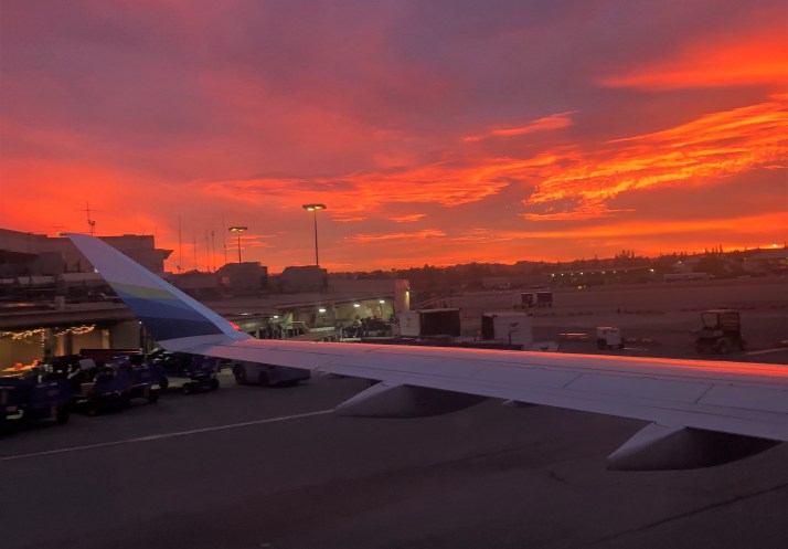 I thought I had learned from our last visit to give extra time (a lot more than the suggestion to arrive 10 minutes before the scheduled departure time) for the FlyAway Bus, but we arrived only 20 minutes early for the 5:00 p.m. bus which would get us to LAX just 10 minutes shy of two hours before our flight. The previous (4:30 p.m.) bus was stuck in traffic and hadn’t even arrived yet, but it was sold out. In the end our bus left 25 minutes late and took 75 minutes (estimated travel time is 35 minutes) to get to the airport. We still had plenty of time, but next time I’ll really know better. Or maybe next time I’ll consider my dad’s helpful back-up-plan suggestion to take the Red Line to the Blue Line to the Green Line to a free shuttle to LAX. He cautioned the Blue Line is extremely slow to begin with, plus you have to travel a third of the way to Long Beach to do this. It’s nice to have access to a local with insider (and opinionated) knowledge of transit. He also coached me about sitting at the fronts or backs of various trains for easy transfers and station exits.