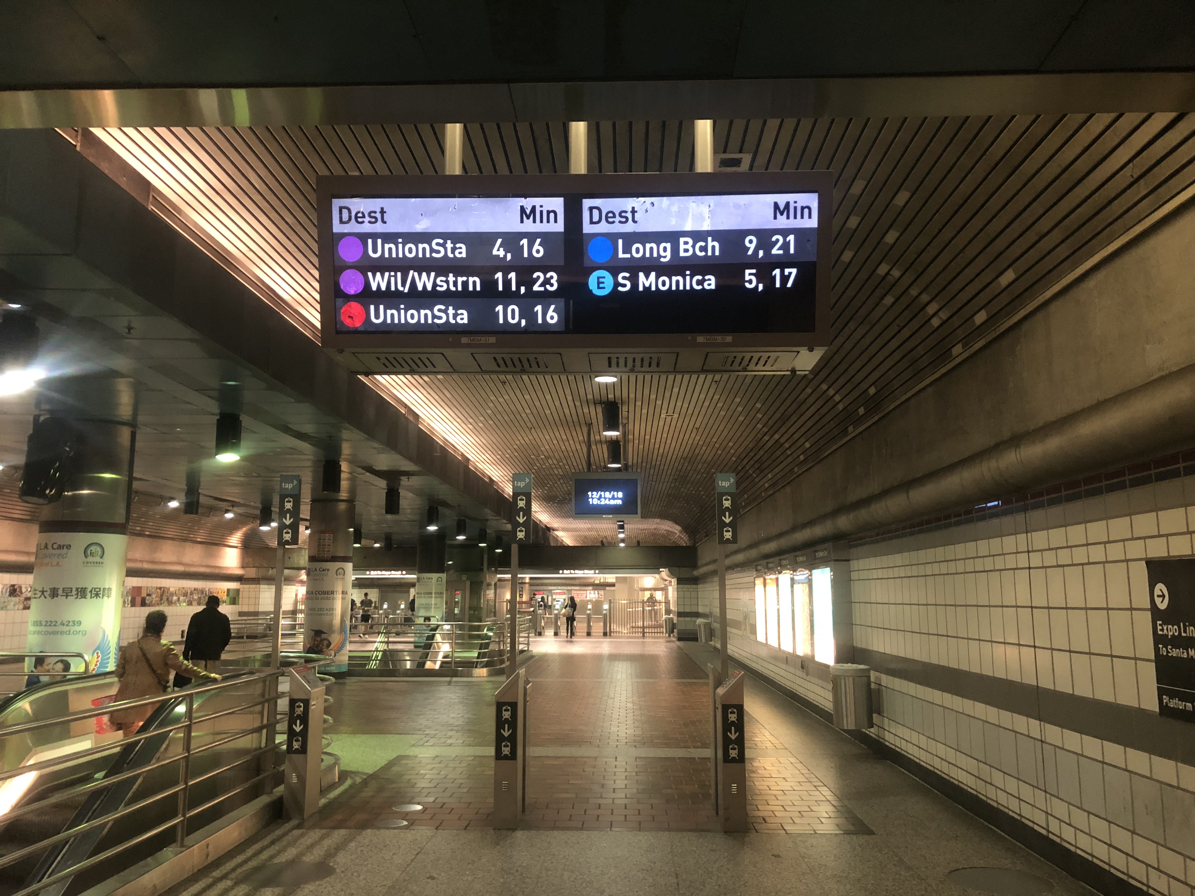 Leaving Portland our bus-to-Green-Line-to-Red-Line voyage to PDX was smooth, but upon check-in we learned our flight had just canceled. The next LAX flight with available seats wasn’t for seven hours, but as luck would have it there was a flight to Burbank at our original flight time with room for three more passengers. It was just a lucky break that I asked at the ticket counter about Burbank–my brother texted me earlier in the day curious if we were flying to LAX or Burbank which tipped me off that Burbank must also be close to Highland Park/Old Pasadena. It turns out it’s even closer, but flights cost more than to LAX so we’ve never flown there. However, this meant I needed to figure out transit from Burbank on the fly. I’m used to having lots of times to poke around online at home and I like to make detailed lists before going anywhere. However, I was extremely glad not to add seven hours to our travel day so I embraced the adventure. Since we had arrived to the airport two hours early, I had time to find and read the Hollywood Burbank Airport Buses & Trains page and learn about the free shuttle to a Metrolink station. Using the shuttle and the Metrolink regional train to Union Station was quicker, cheaper, and more comfortable than our original plan of taking the FlyAway Bus from LAX to Union Station. From there we grabbed the Gold Line to my brother’s house for dinner, sticking to our original plan and timing.