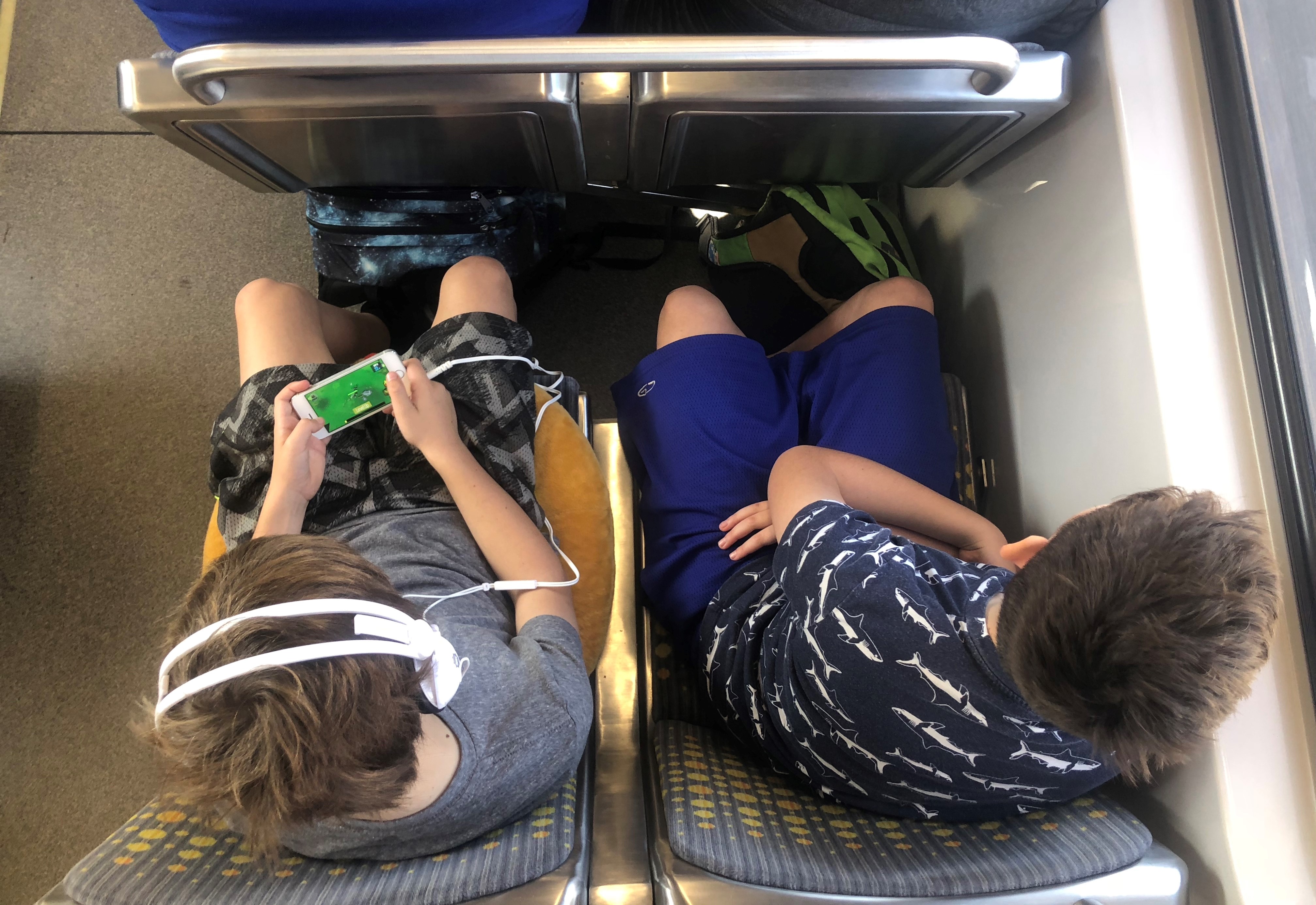 Looking at a screen and looking at the view: two ways to pass the time on the train.