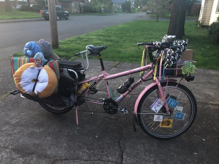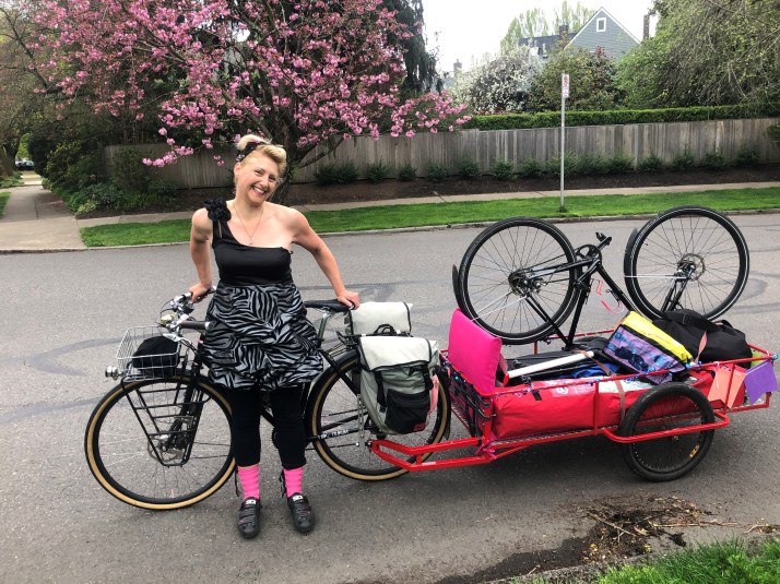April 13th was the Ladd’s 500! Like last year, I didn’t have the kids this day so I could stay all day. Last year I had trouble deciding which bike to bring so I decided to bring them all: cargo bike, single speed, folding bike, and longboard skateboard. And last year I was on Armando’s 10-person team and did a few rounds of 30-lap stints. This was a bit different and I brought only two bikes, planning to only ride one (my single speed) the whole time, but swap to my Straggler if I got tired. The Straggler came along to pull my cargo trailer full of pop-up tent, camp chairs, snacks, and single speed. This year was mostly different in that I was on a two-person team with Joe “Metal Cowboy” Kurmaskie so we each rode 50 miles in 25-lap increments. It was a lot harder than last year, but really fun! Last year I did a bunch of bonus laps that didn’t count towards my team toting two photographers and one podcaster around on my cargo bike. This year I carried relay organizer Barstow around in my cargo trailer once I was done. That was just as fun as all the racing! See a bunch of great photos by Eric Thornburg here.