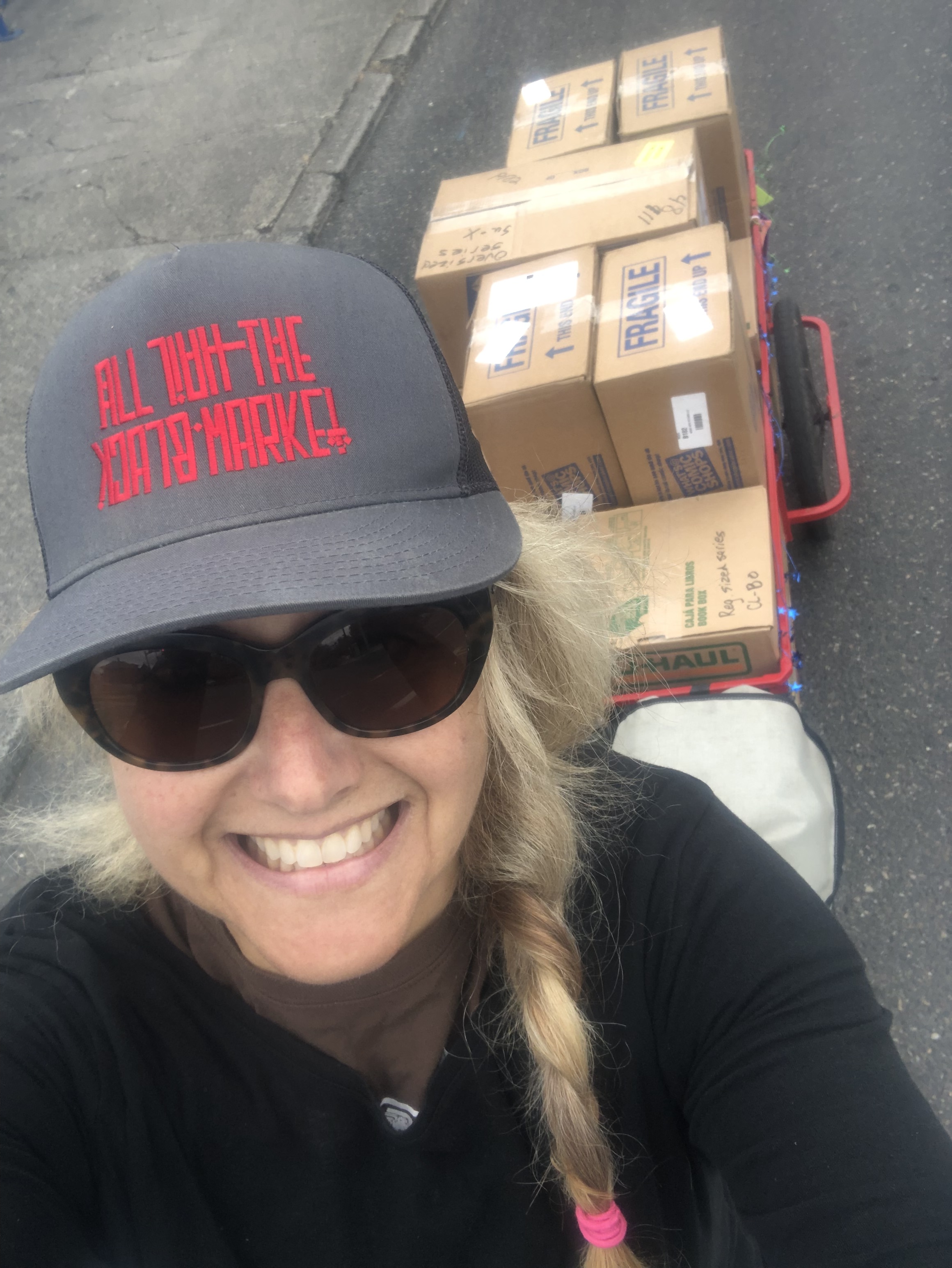 I may not have announced my new-to-me cargo trailer on the blog: I have a Haulin’ Colin heavy duty cargo trailer now! I’ve borrowed Haulin’ Colin trailers in the past and eventually got my own hitch to borrow my neighbor Velotron’s. With my move away from Seattle, and then his move away from Seattle, the trailer has become mine! It’s 5 feet by 2 feet and I’ve carried 500 pounds with it, but it can handle even more weight…I probably can’t, though!
