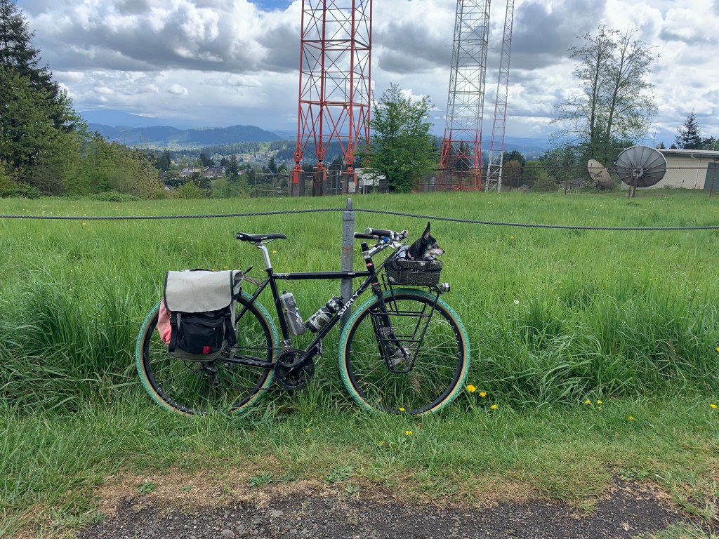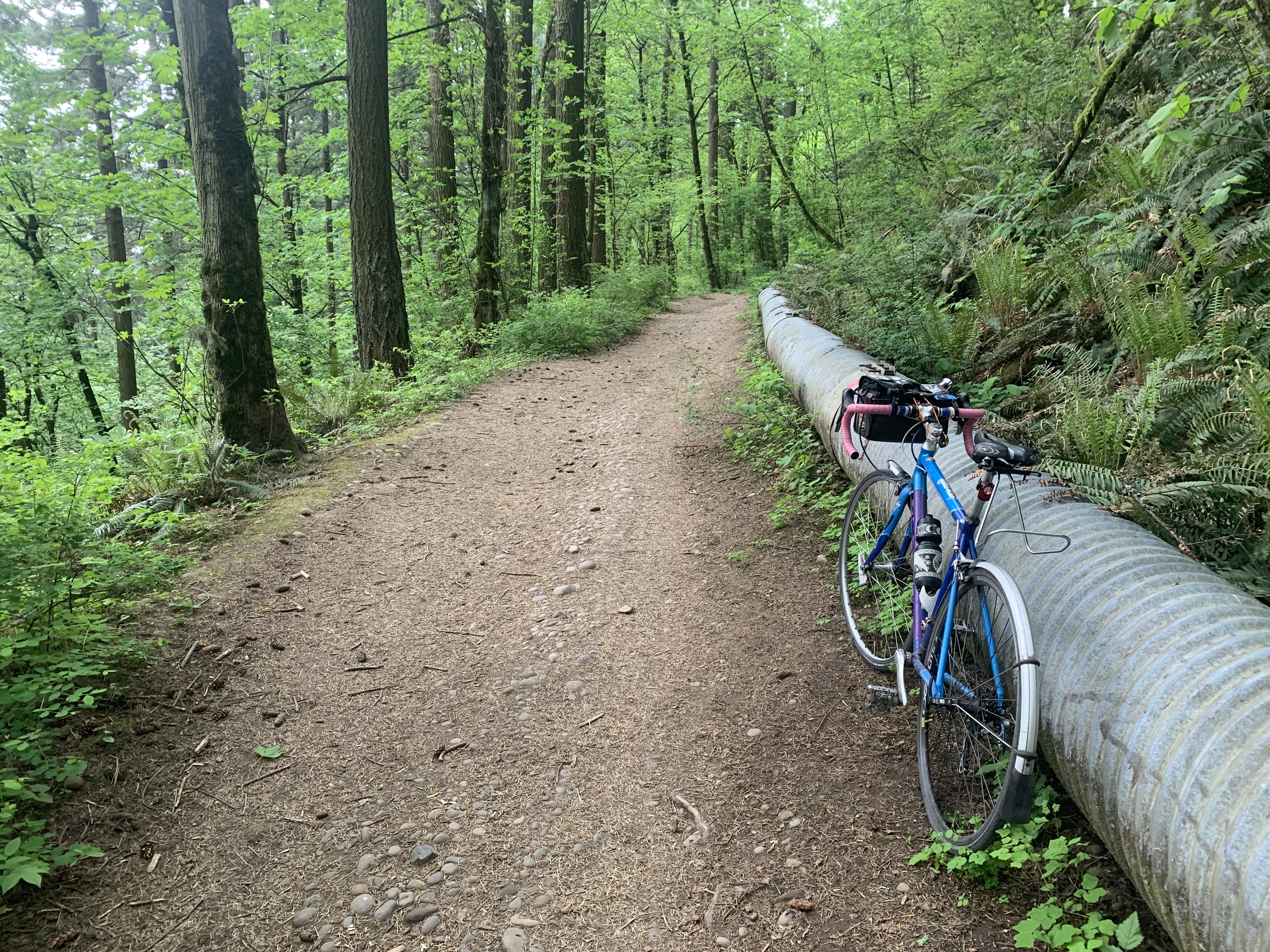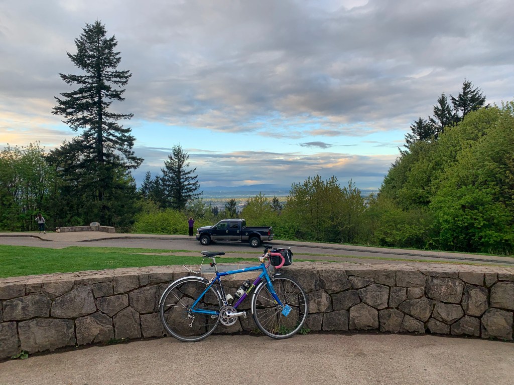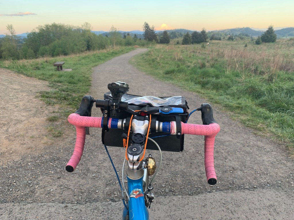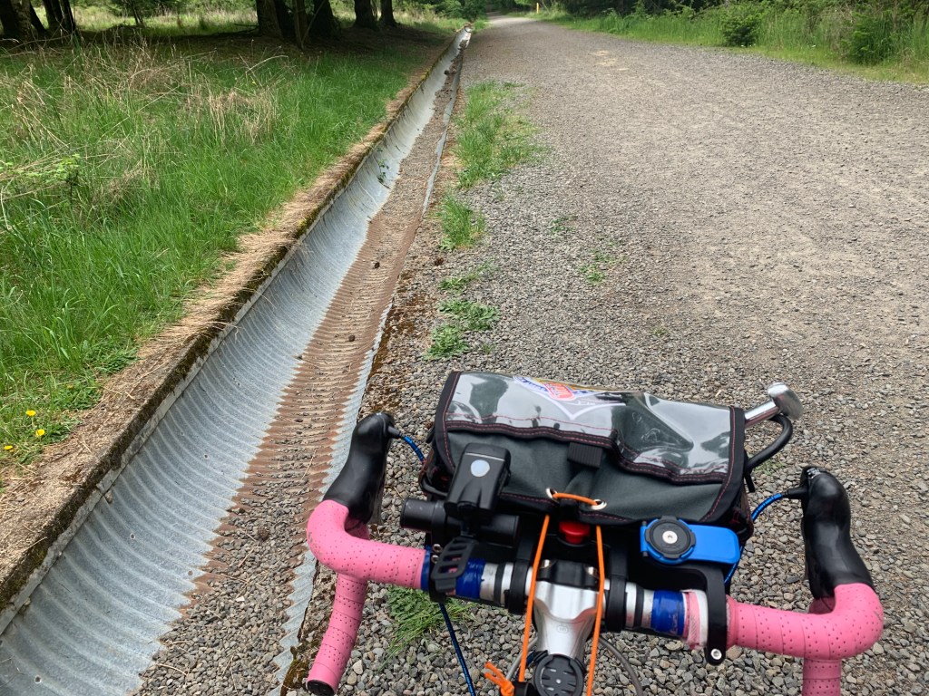 I’m not spontaneous enough to bike 6.5 miles with no destination and then turn back to hit my 13-mile quota so I routed a test run to Powell Butte, using the Pipeline Trail friends told me about on Instagram. It’s apparently the gentlest way up. I couldn’t tell how to get to the bottom of the Pipeline so I took a different trail on the way up, figuring it’d be easy to figure out Pipeline on the way down. It all worked OK on my road bike (I was testing to see if I could bring my friends on their road bikes, but I don’t think it’s quite that road-bike-friendly), but I’ll be back on my Straggler or my kid’s mountain bike. Even the trail that wasn’t named Pipeline had a pipeline on it, which I found cute.