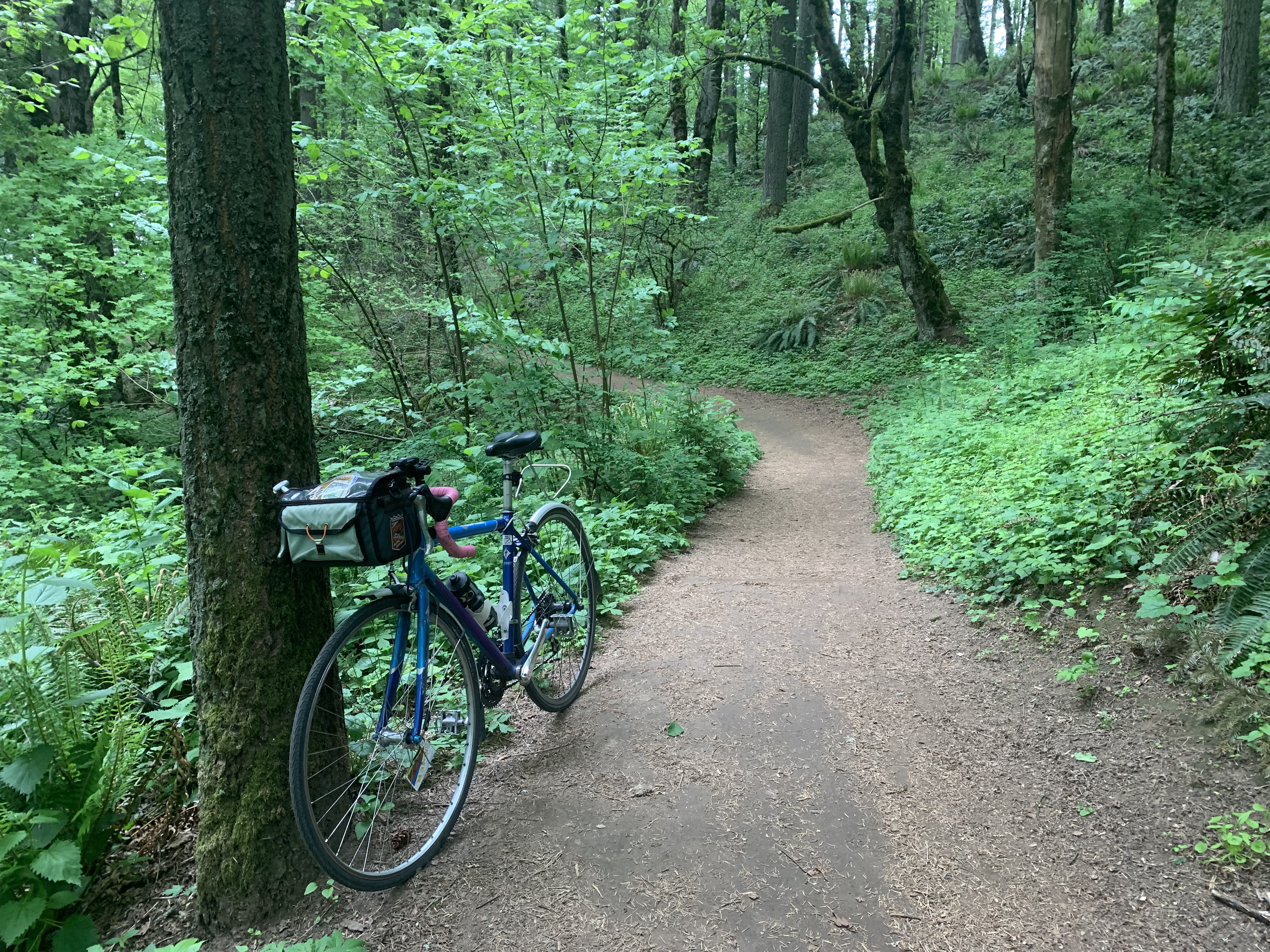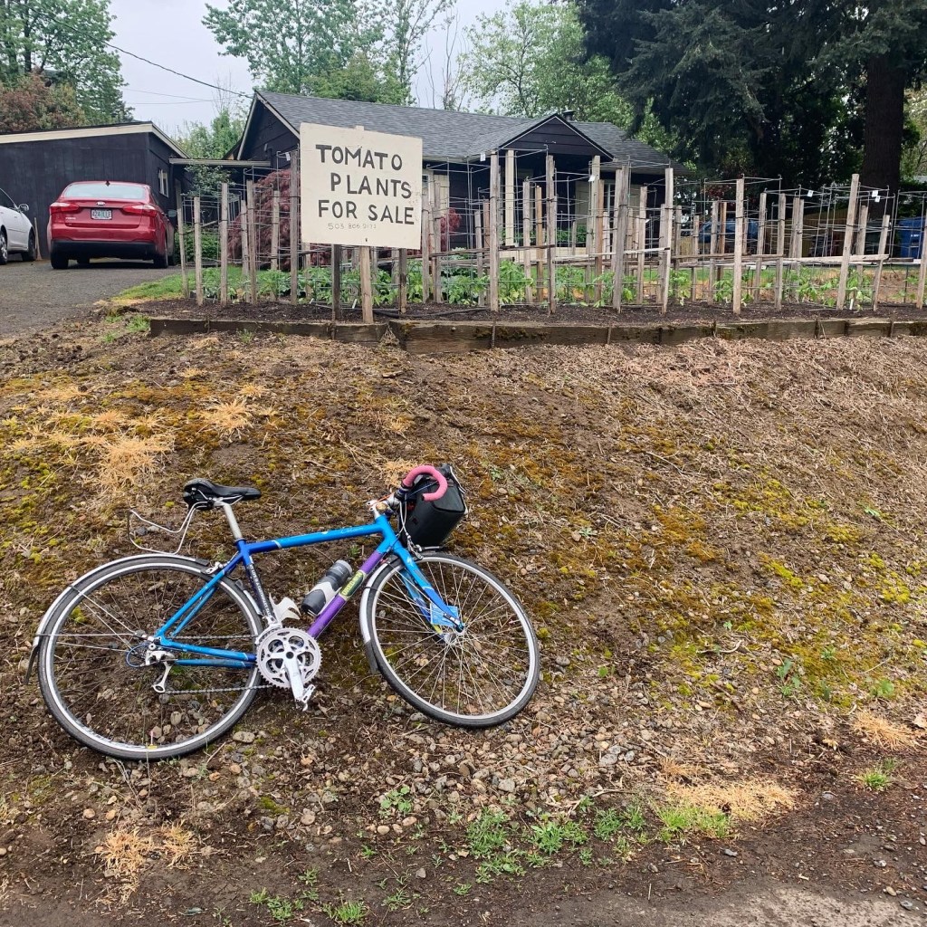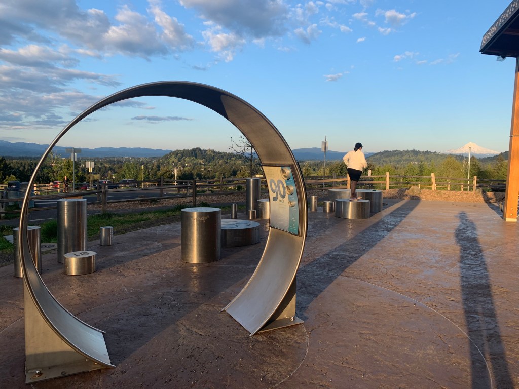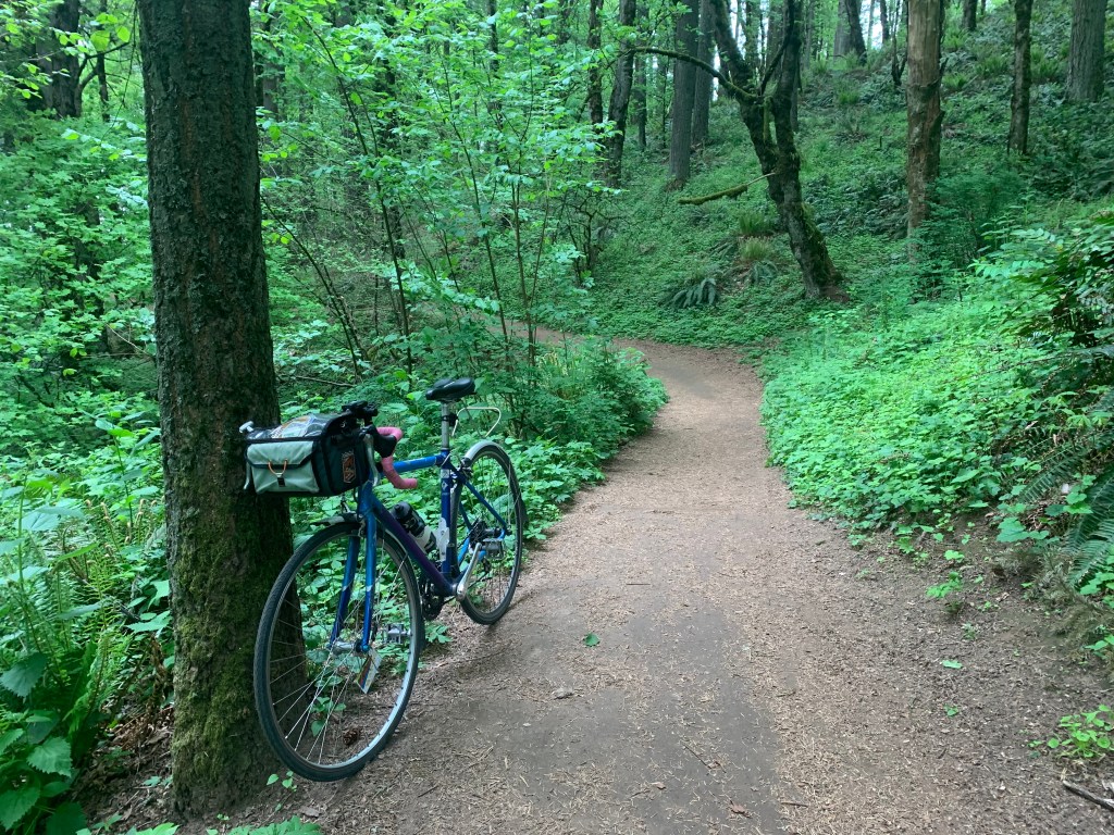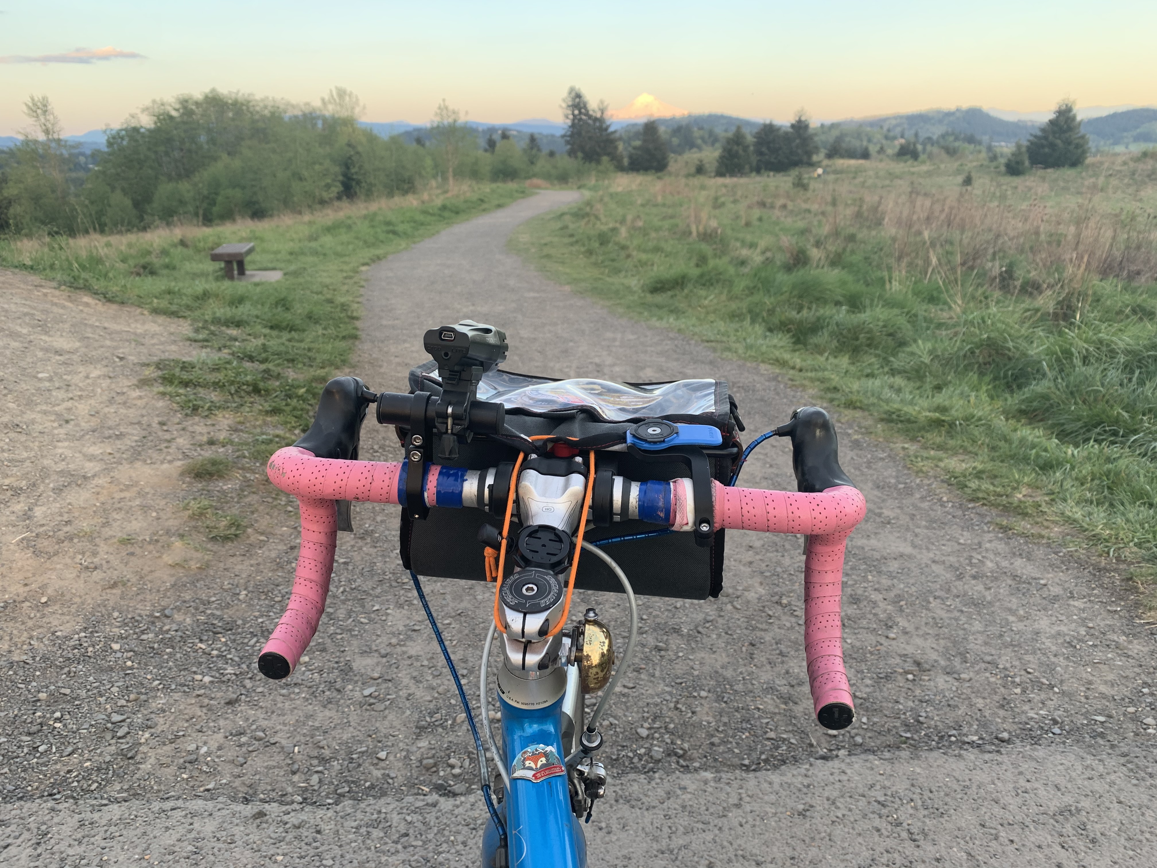 I’m not spontaneous enough to bike 6.5 miles with no destination and then turn back to hit my 13-mile quota so I routed a test run to Powell Butte, using the Pipeline Trail friends told me about on Instagram. It’s apparently the gentlest way up. I couldn’t tell how to get to the bottom of the Pipeline so I took a different trail on the way up, figuring it’d be easy to figure out Pipeline on the way down. It all worked OK on my road bike (I was testing to see if I could bring my friends on their road bikes, but I don’t think it’s quite that road-bike-friendly), but I’ll be back on my Straggler or my kid’s mountain bike. Even the trail that wasn’t named Pipeline had a pipeline on it, which I found cute.