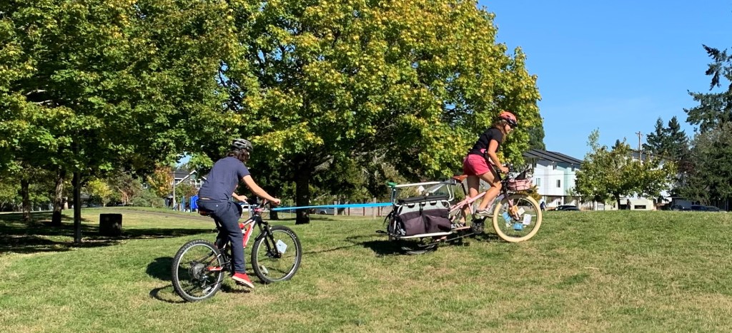 We all have 26-inch wheels these days and the tow rope works for all sizes of bikes. The website FAQ states the tow rope is designed for kids, but works for adults, too (it’s rated to 500lb). When I posted one of our test runs on my Instagram, BikePOC PNW adventurers commented that they bring theirs on all BikePOC PNW group rides in case of “catastrophic mechanicals.” I don’t know if this means they often haul adults with broken chains 50 miles up gravel mountains, but that’s certainly what I’m picturing.
