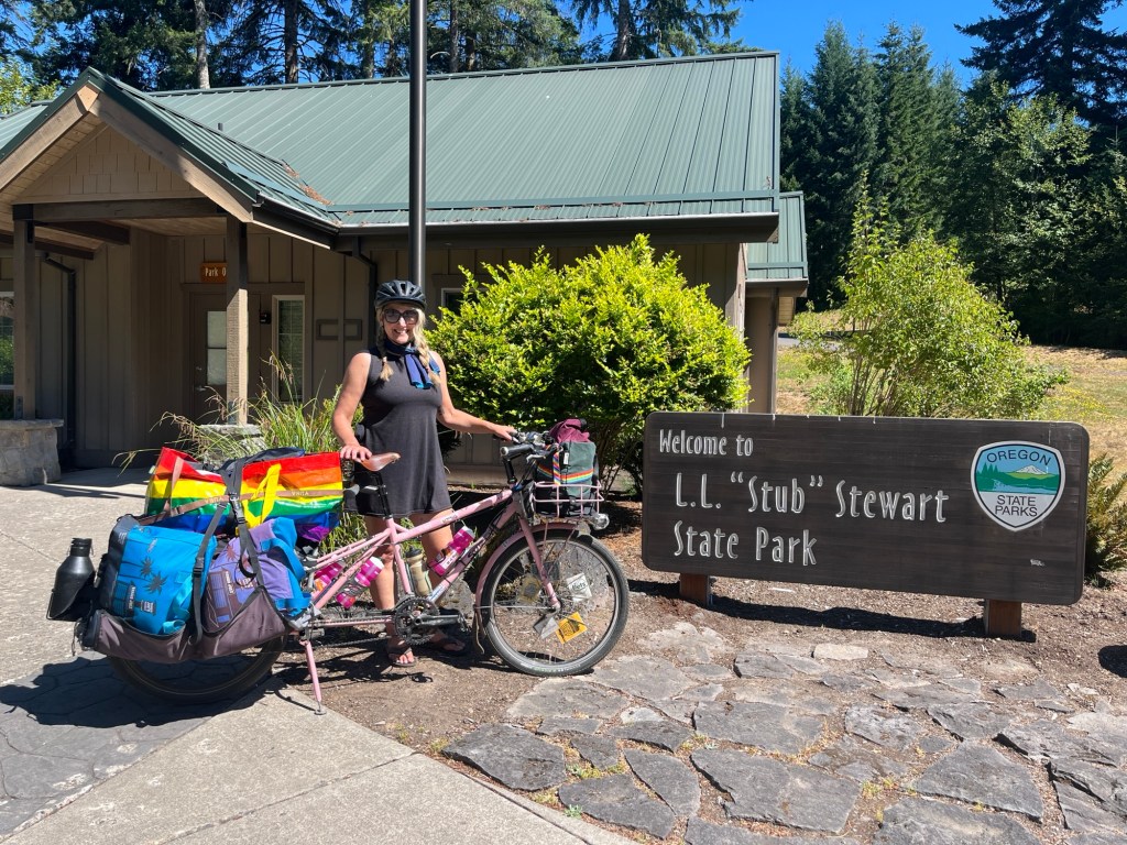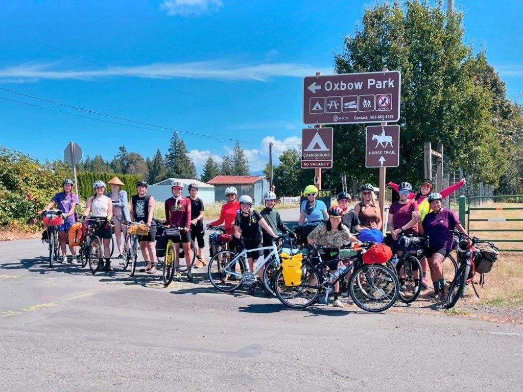 The most exciting “groceries-plus” trips I took with the the Big Dummy over the past year were beginner-friendly bike camping trips for The Street Trust’s WeBike program that inspires trans people of all genders, gender non-conforming people, Two Spirit, and women (both trans and cis) to incorporate a bike into their lives. This year we took two trips–first west to Stub Stewart State Park and then east to Oxbow Regional Park. These are the only two true beginner-friends campgrounds near Portland, but I’m still holding out hope Dodge Park will reopen for camping one of these days–it’s definitely the easiest.