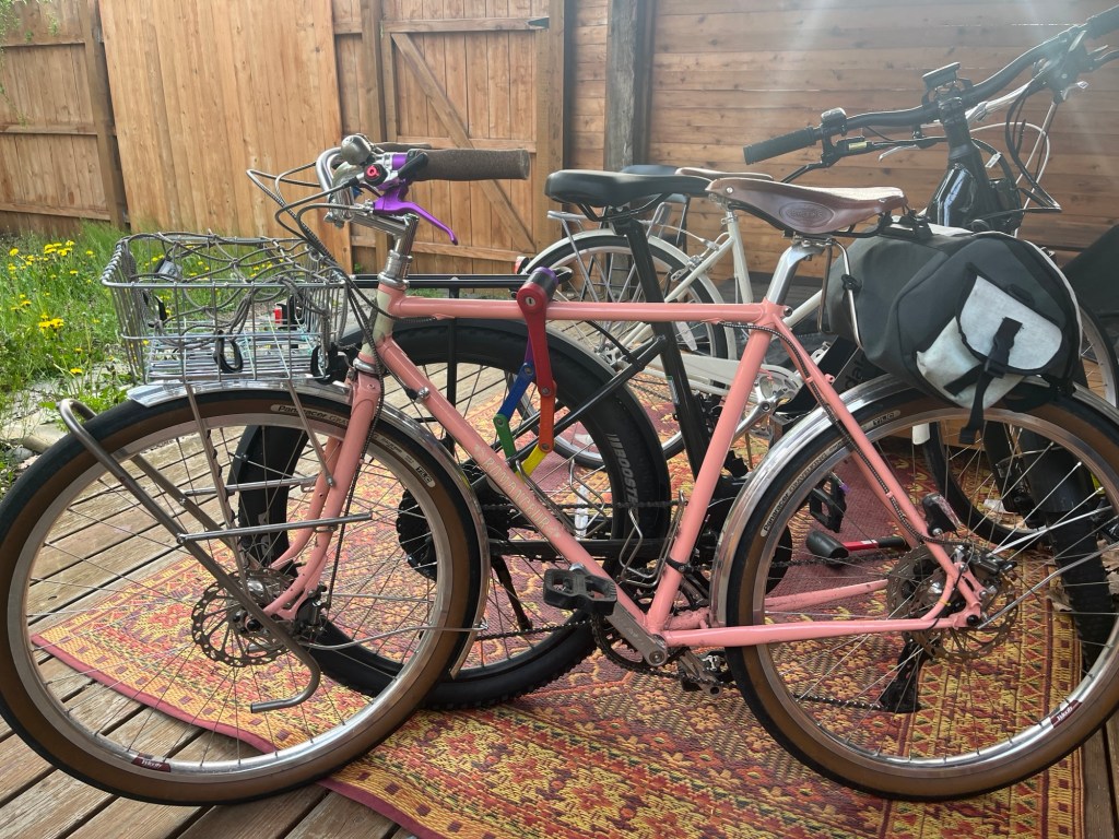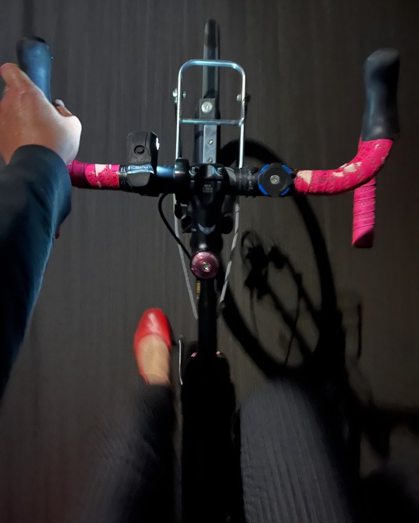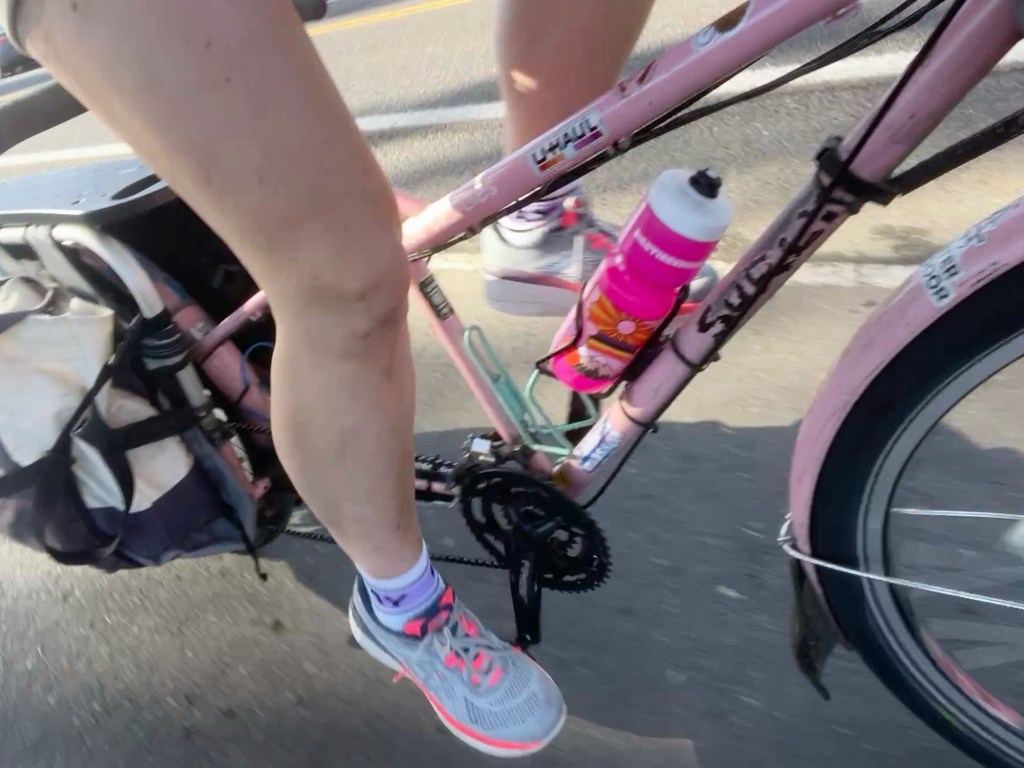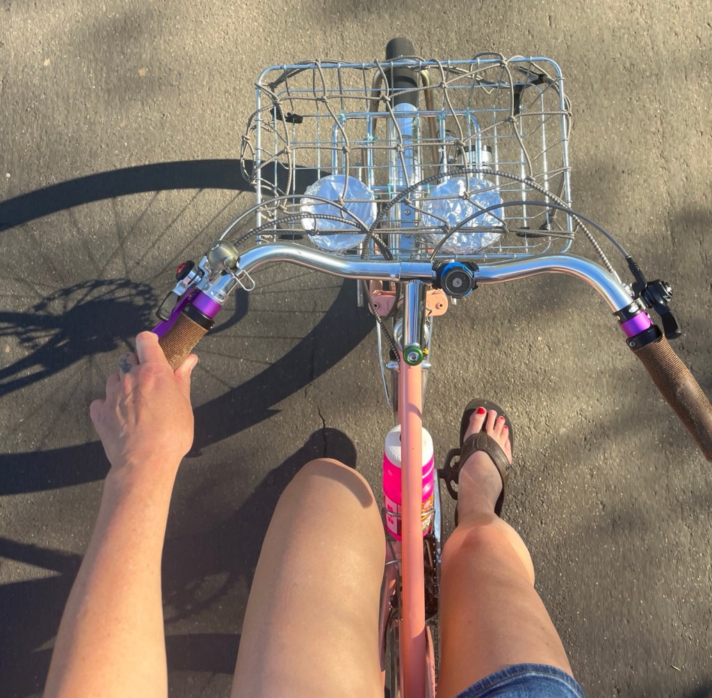 #30daysofbiking day 17: Borrowed my kiddo’s bike today. This pâtisserie is finally repainted and is Barbie pink again. It’s been plain white for a while during its redo.