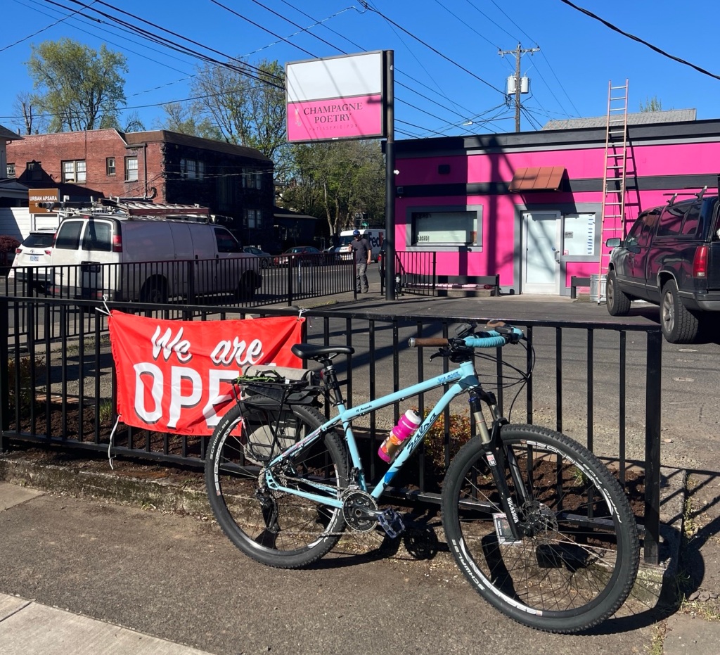 While biking half a mile to the orthodontist this morning, my kiddo and I had to leave the bike lane go around a landscaping truck. Meanwhile a distinctly non-bikey looking woman was crossing the street nearby and acknowledged us with a, “Welcome to Portland, City of Cars!”