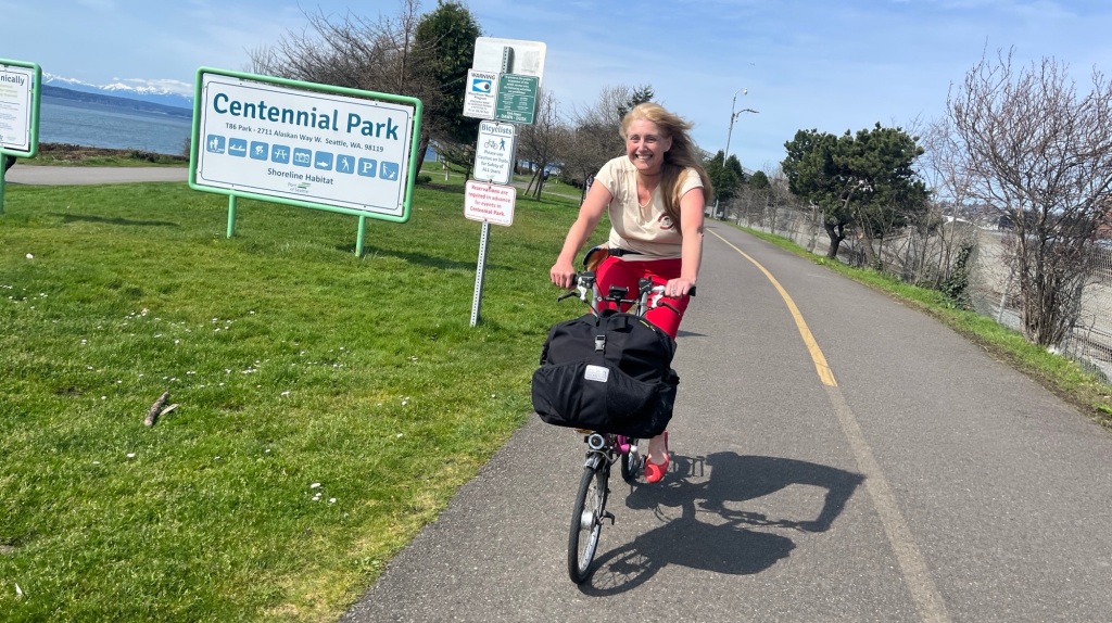 #30daysofbiking day 16: Brompton day! I forgot to take a photo so here’s a pic of the Brompton in Seattle last month.