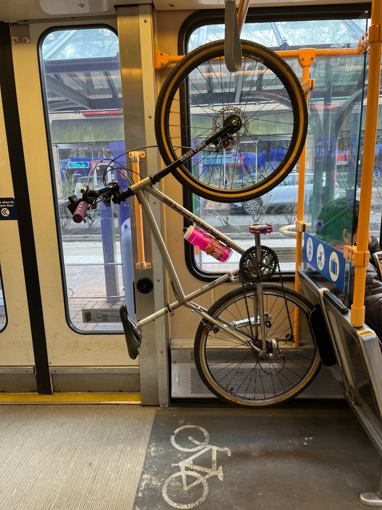 #30daysofbiking day 4: Aw geez, it’s so early in the month and I’ve already forgotten to document the day with a photo. I took my Parkpre out today, and here’s a photo of it from a month ago on the MAX light rail.