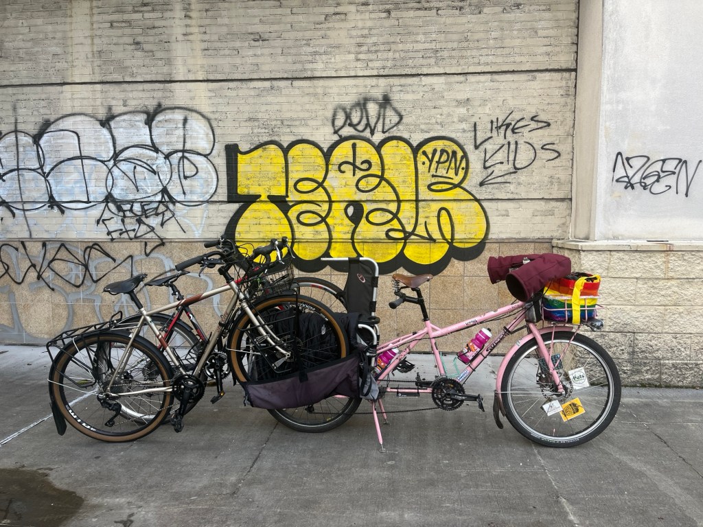 Other than those especially fun jaunts, I made one long-but-flat IKEA trip, took a million grocery runs (including tonight—gotta make a birthday grocery run!), and towed bikes around fewer than a million times, but still a lot! And various other big carries, like bringing a dog ramp to mall to give to Secondhand Pet Supply.