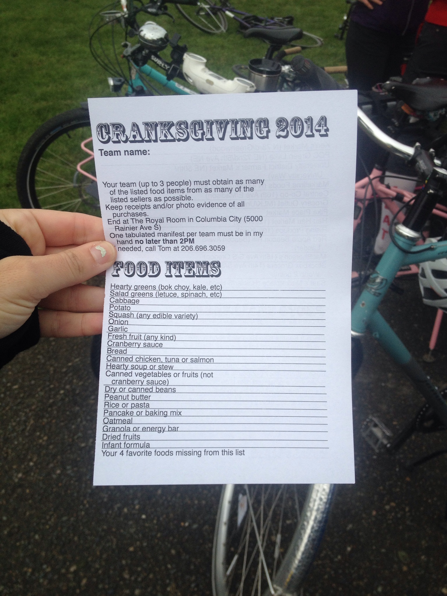 Happy Cranksgiving, everyone! Cranksgiving defined by Seattle Bike Blog: