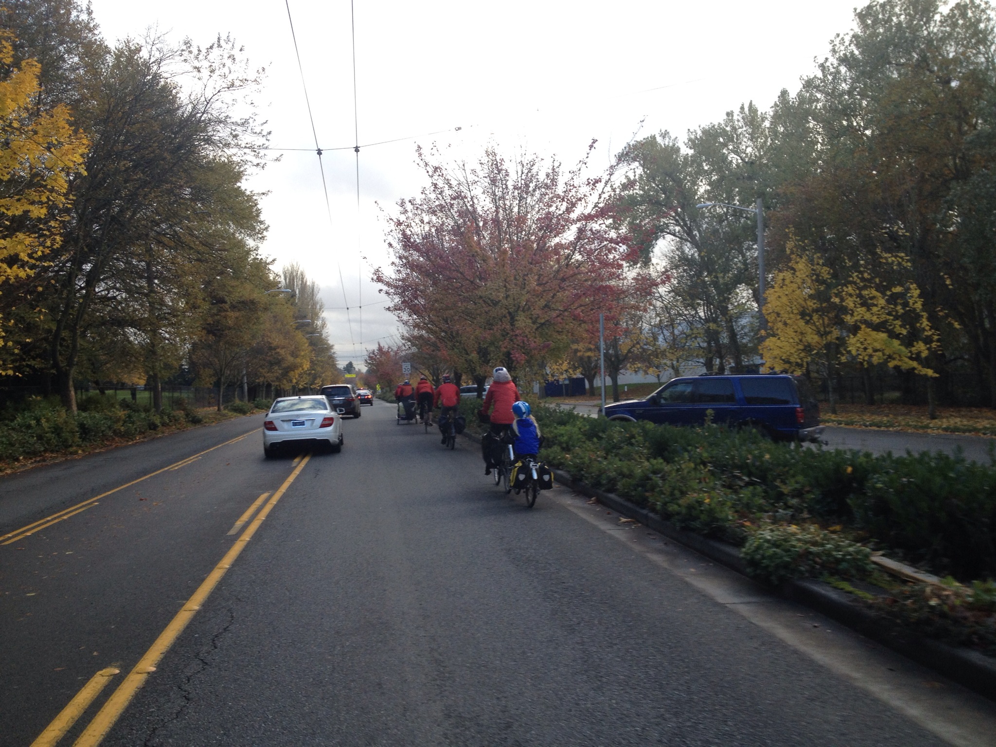 Even without my carefully curated directions, we avoided busy streets until Beacon Avenue South after playing on the zip line in Jefferson Park–and this part of Beacon was on my route anyway. However, everyone passed cautiously. So refreshing and not at all like Lake Washington Boulevard last year.