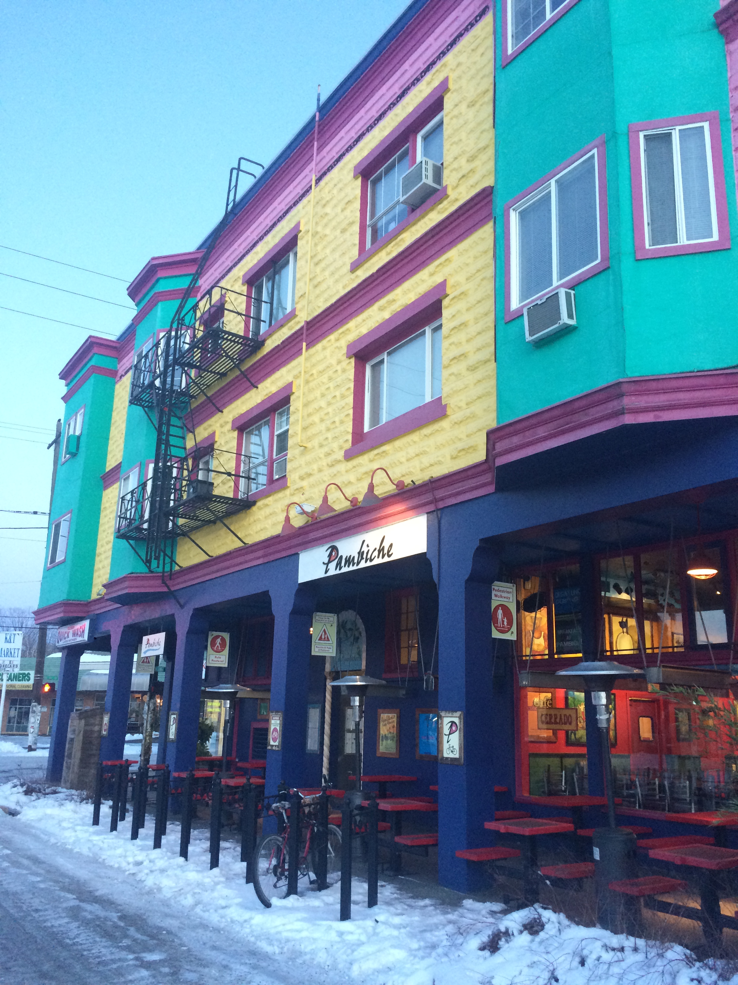 So now my bike was sorted. Without the Straggler’s front basket, Pixie was forced to travel in her Timbuk2 Muttmover backpack the whole trip. This was probably better considering the slippery snow.